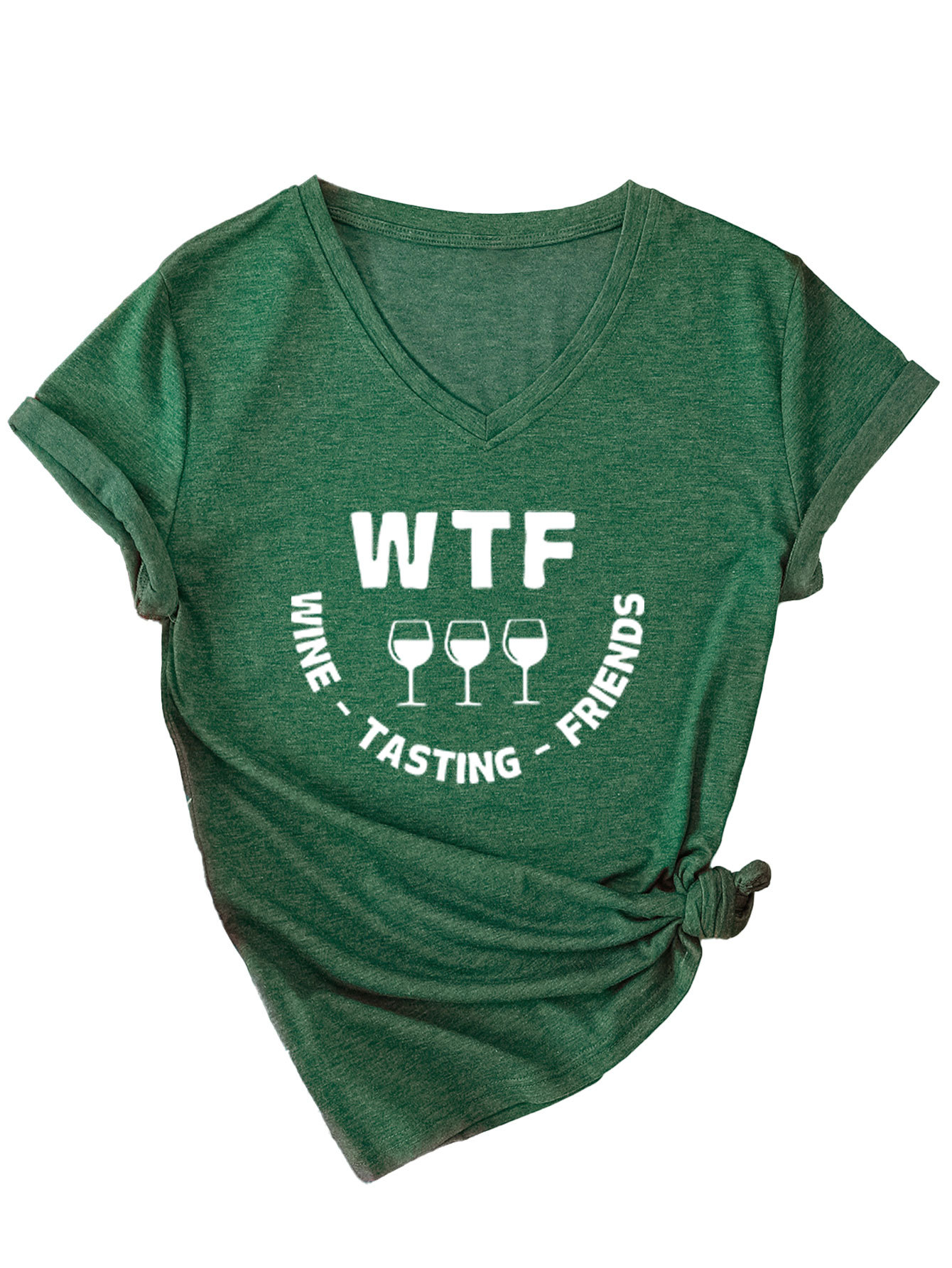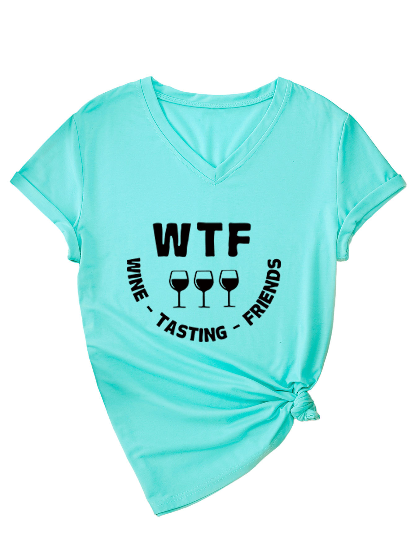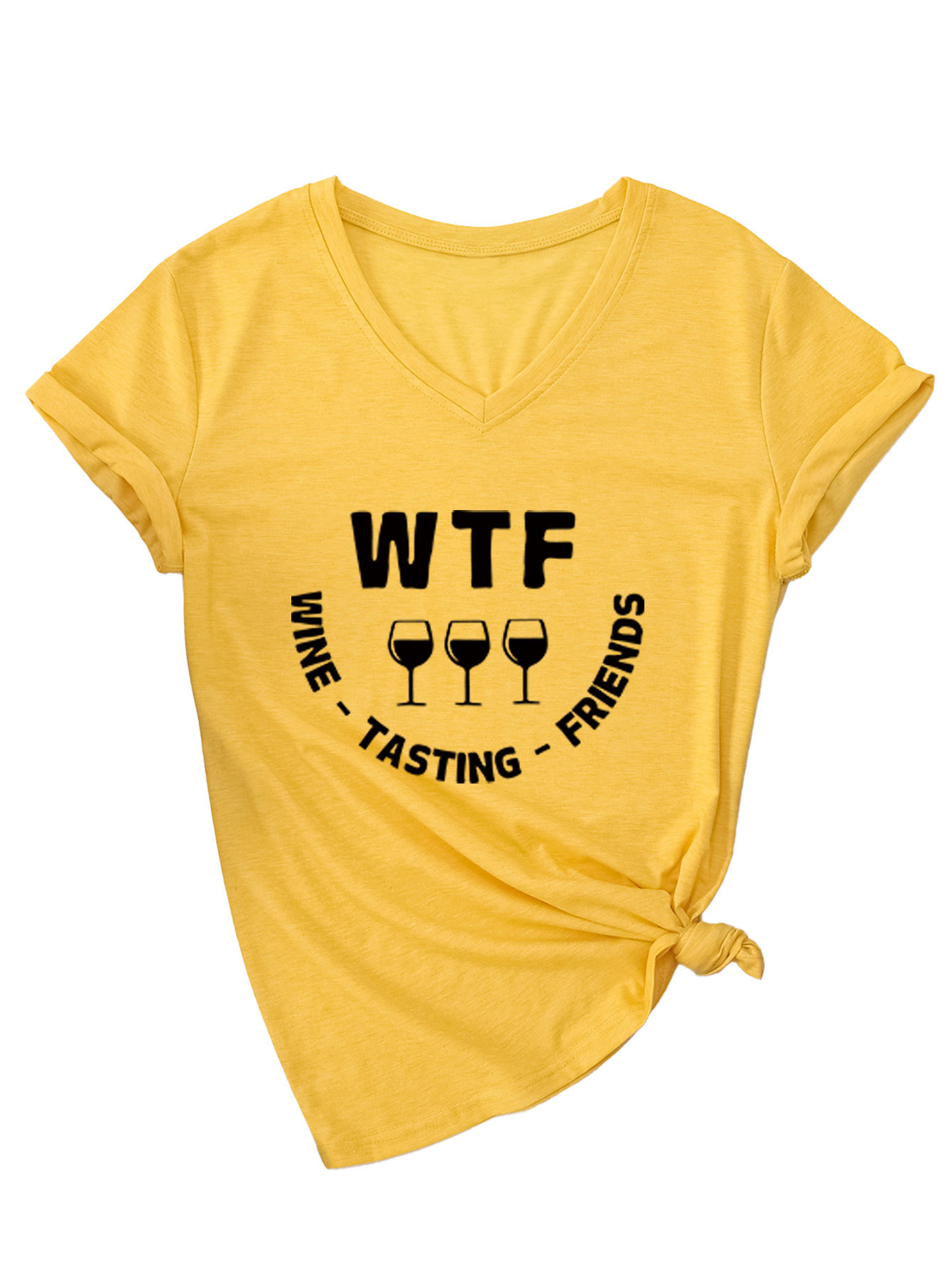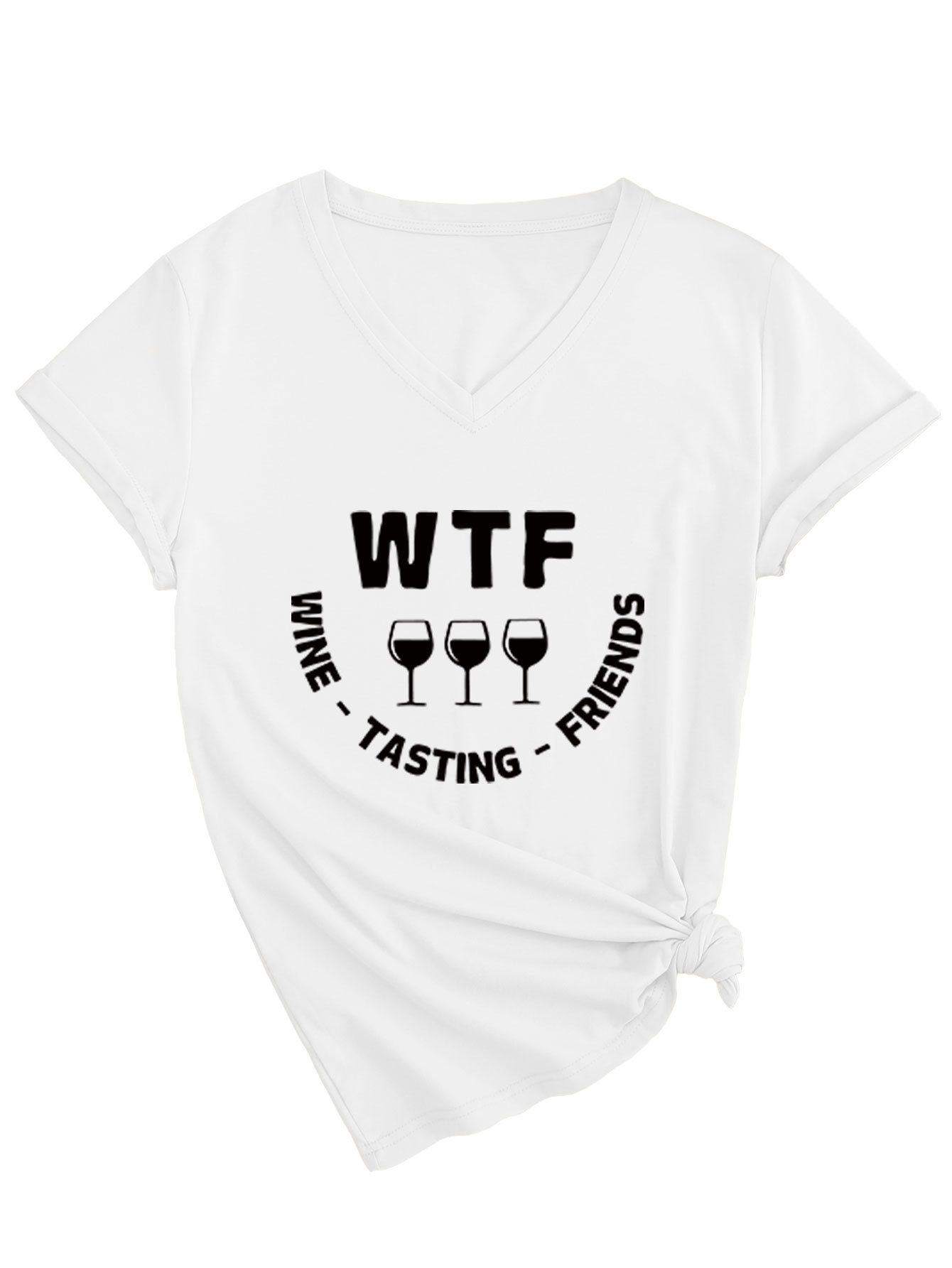 유럽과 미국의 소원 패션 편안한 독립 스테이션 wtf 와인 시음 여성 V 넥 반소매 아마존 티셔츠스토어 가기