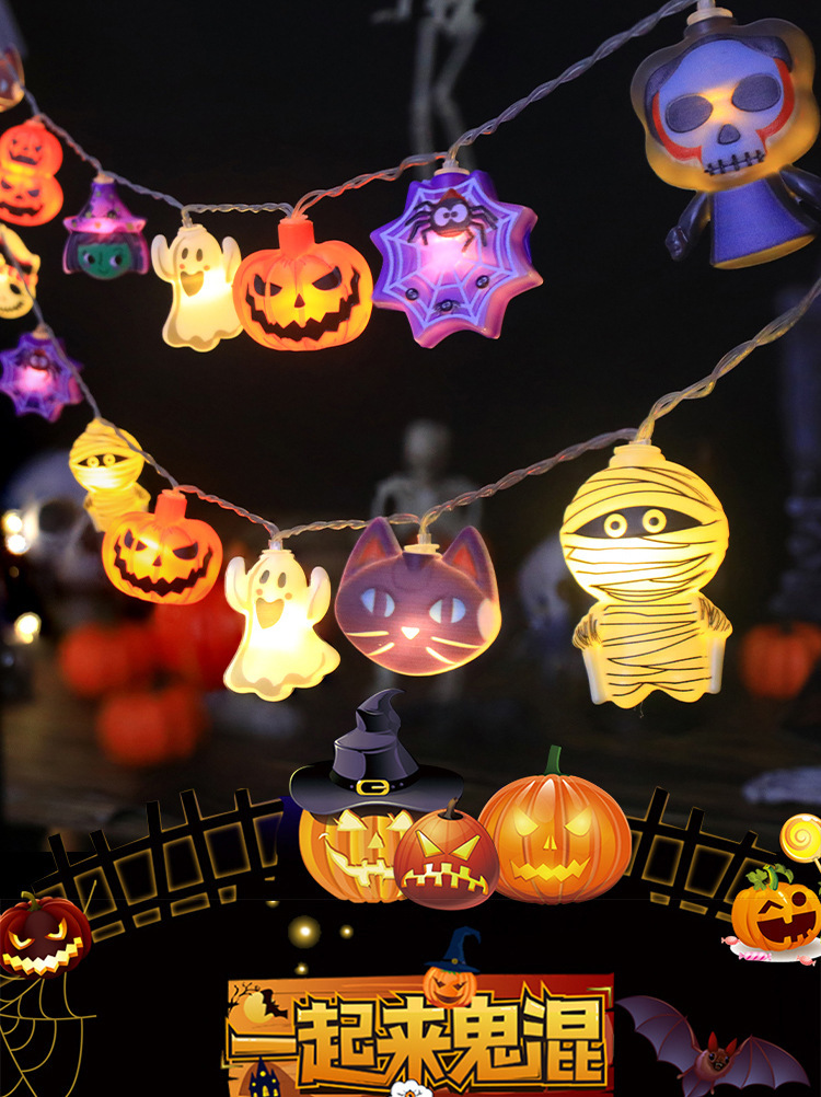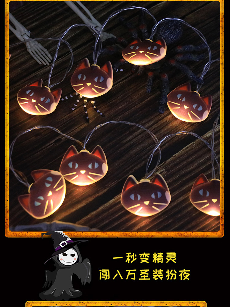 국경 할로윈 led 거미 조명 끈 유령 축제 공포 장식 조명 방 야외 방수 분위기 조명 창조적 인 학교스토어 가기