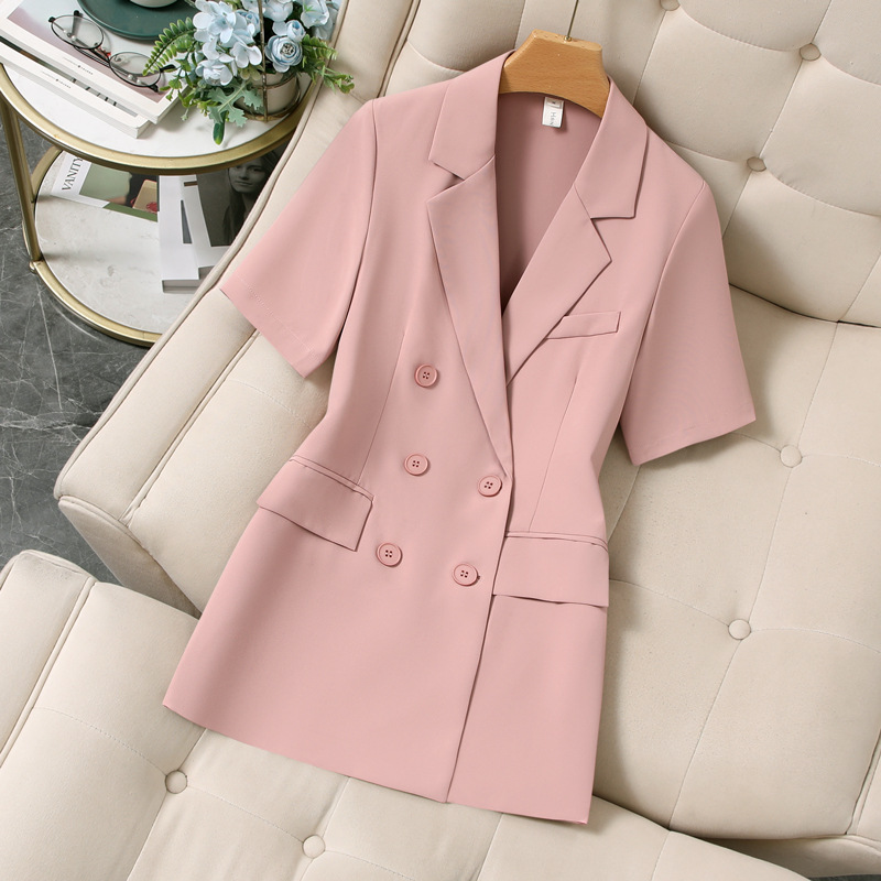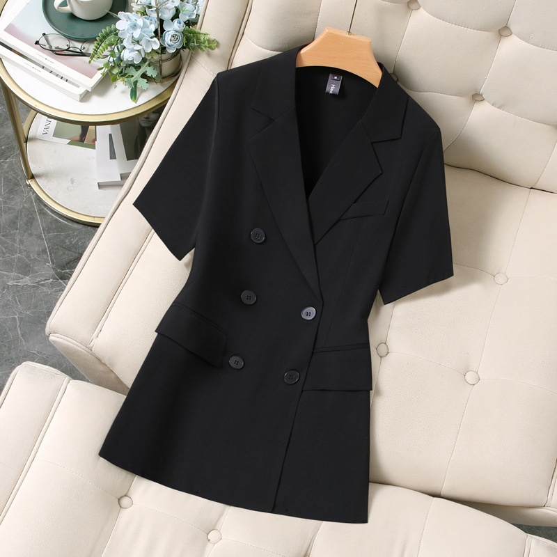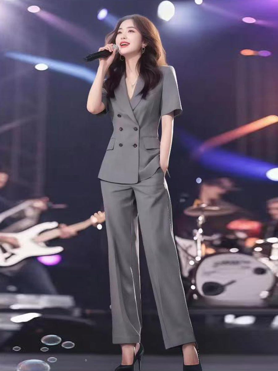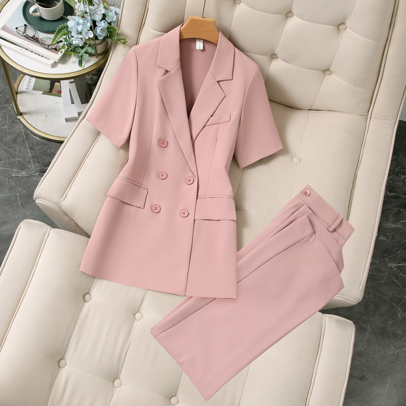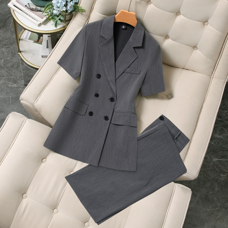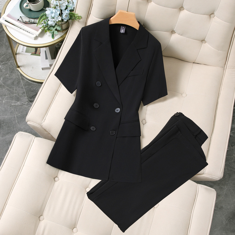 XZ188-여름 얇은 정장 스트레이트 바지 정장 플러스 사이즈 여성 뚱뚱한 MM 반팔 전문 면접 작업복 재킷