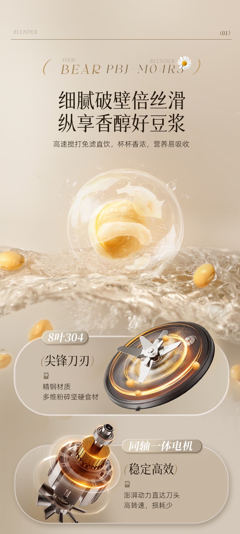 곰 벽 파괴 기계 PBJ-M04R3 가정용 완전 자동 슬러지 프리 두유 기계 조용하고 가벼운 다기능 소형 요리