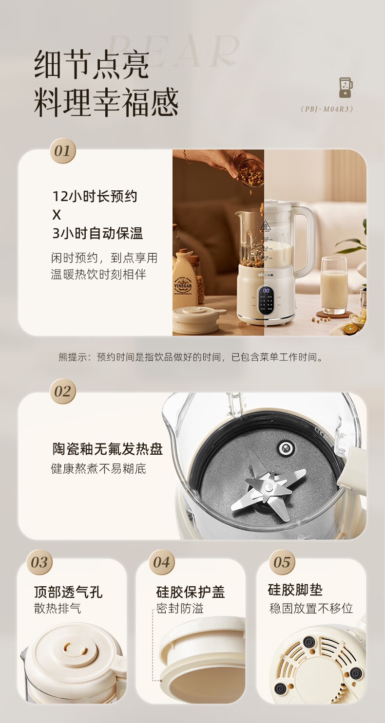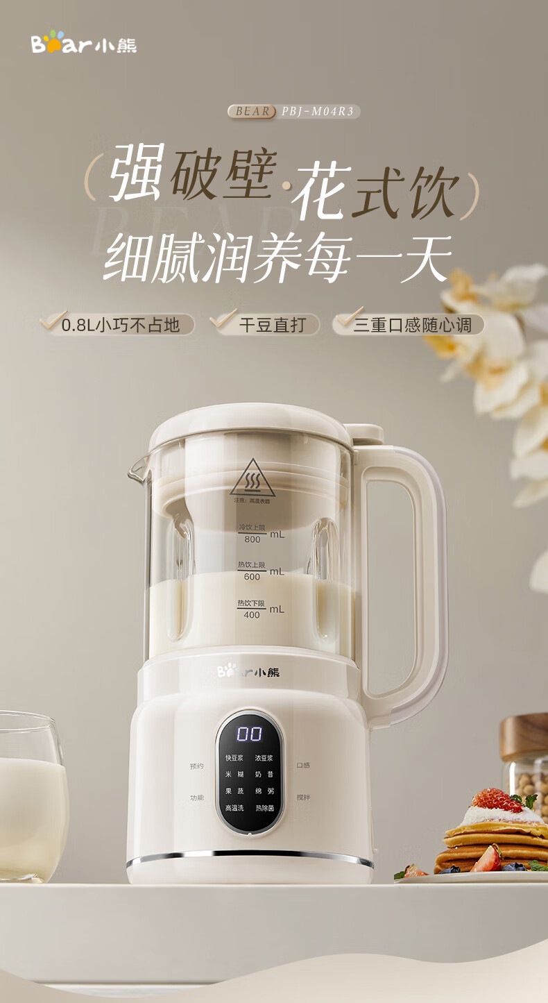 곰 벽 파괴 기계 PBJ-M04R3 가정용 완전 자동 슬러지 프리 두유 기계 조용하고 가벼운 다기능 소형 요리스토어 가기