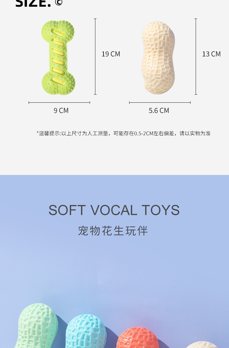 애완 동물 소리 나는 어금니 뼈 장난감, 물기 방지 및 어금니 재료, 개 대화 형 장난감, 애완 동물 치아 청소 장난감 도매스토어 가기