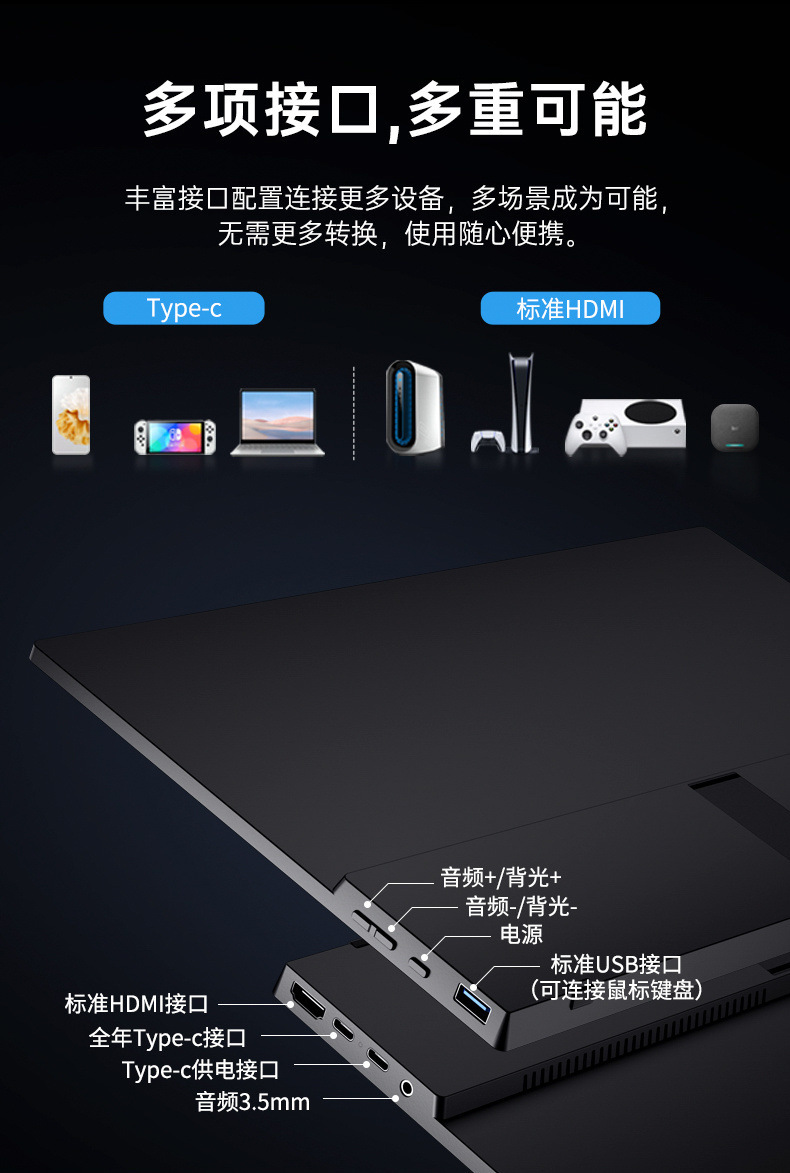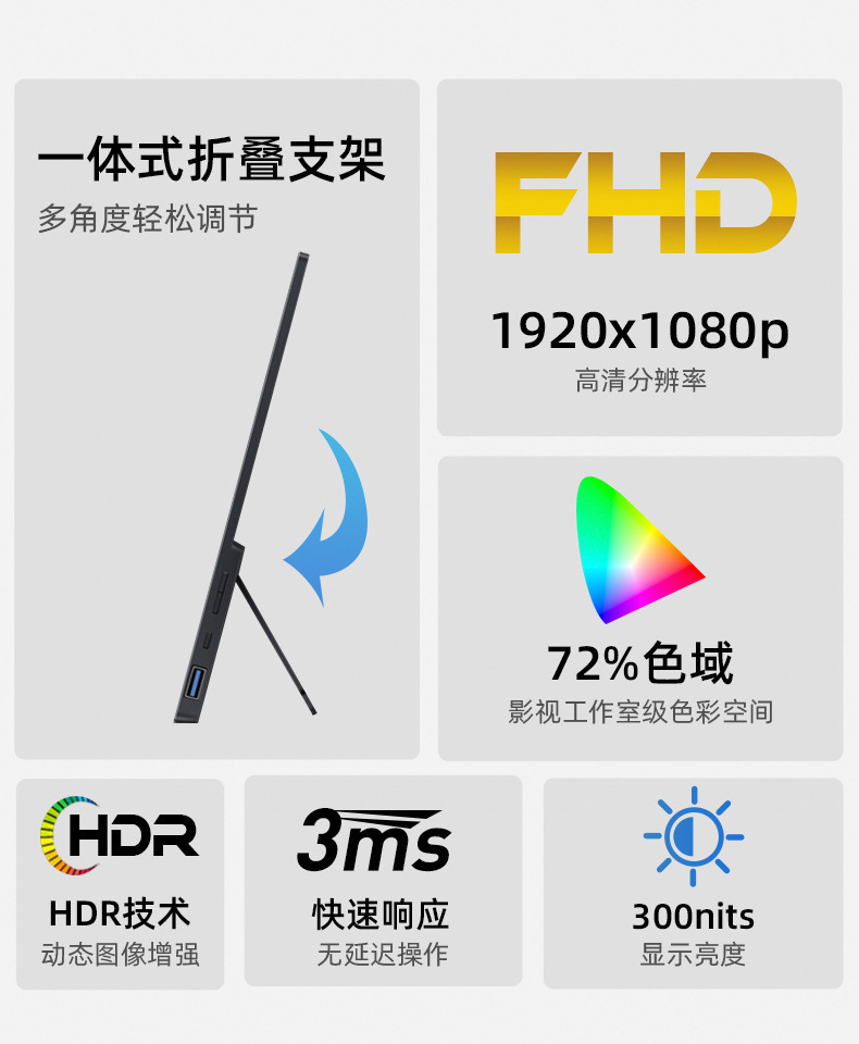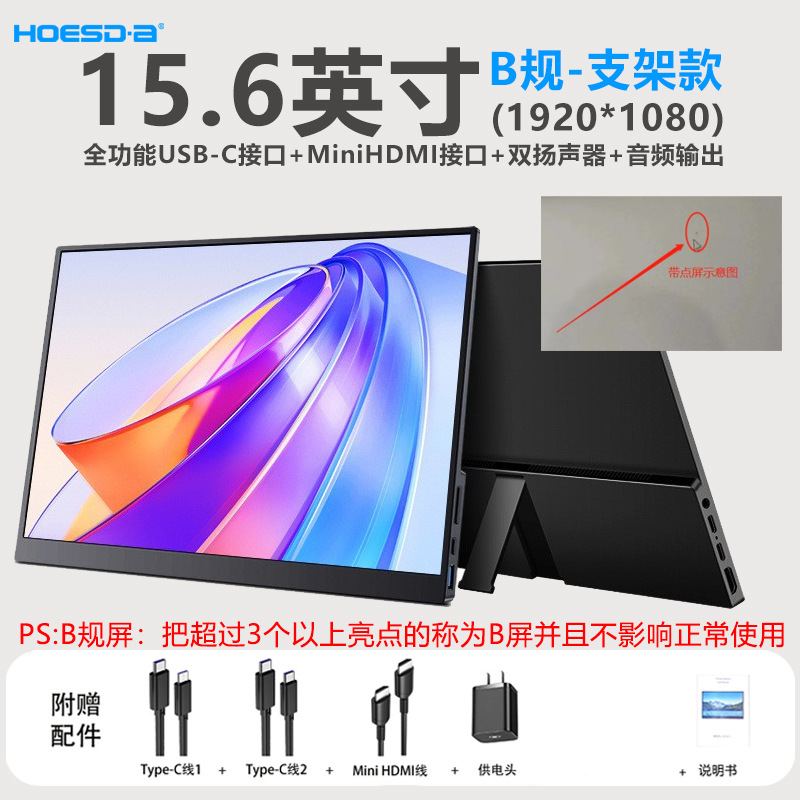 15.6inch 스탠드형 휴대용 모니터 스위치 보조 화면 IPS 휴대용 외부 디스플레이