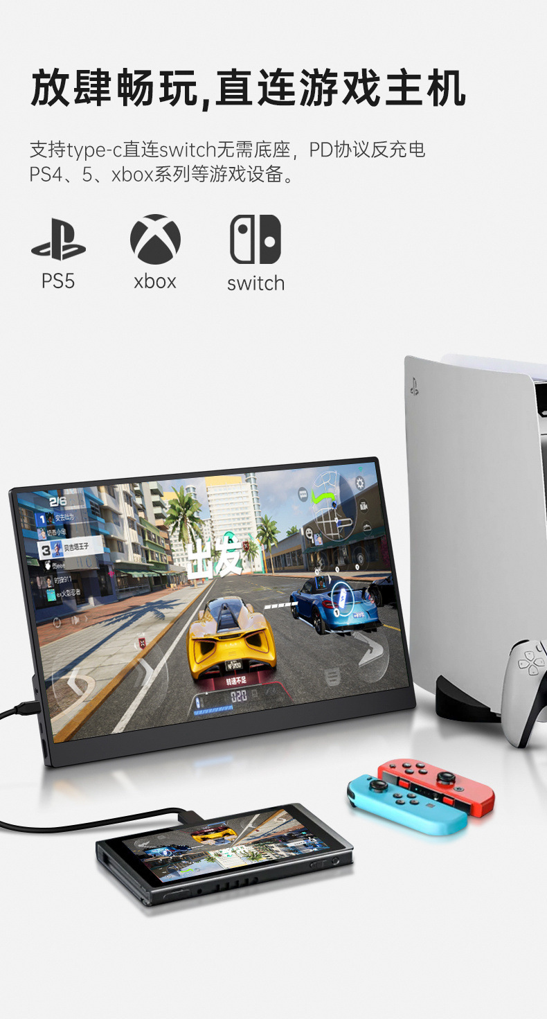 15.6inch 스탠드형 휴대용 모니터 스위치 보조 화면 IPS 휴대용 외부 디스플레이스토어 가기