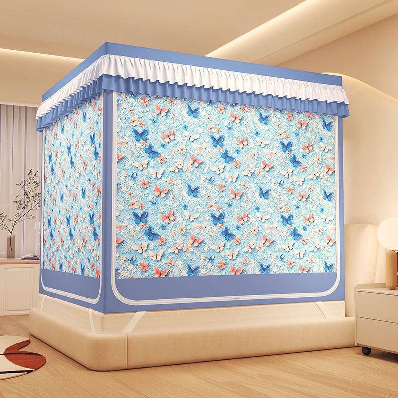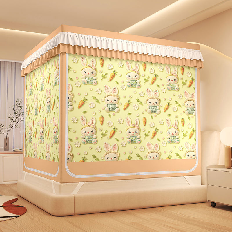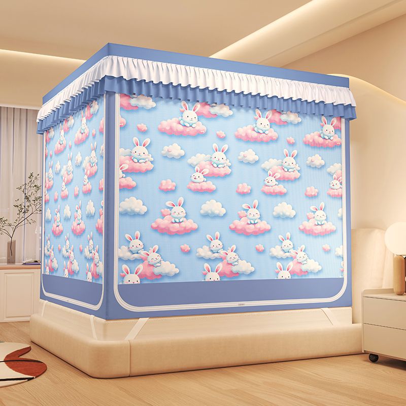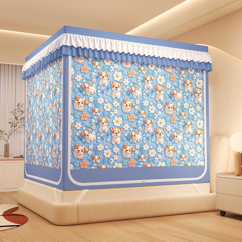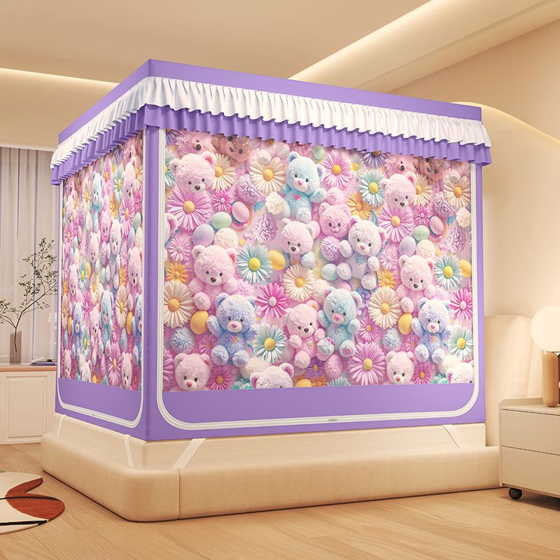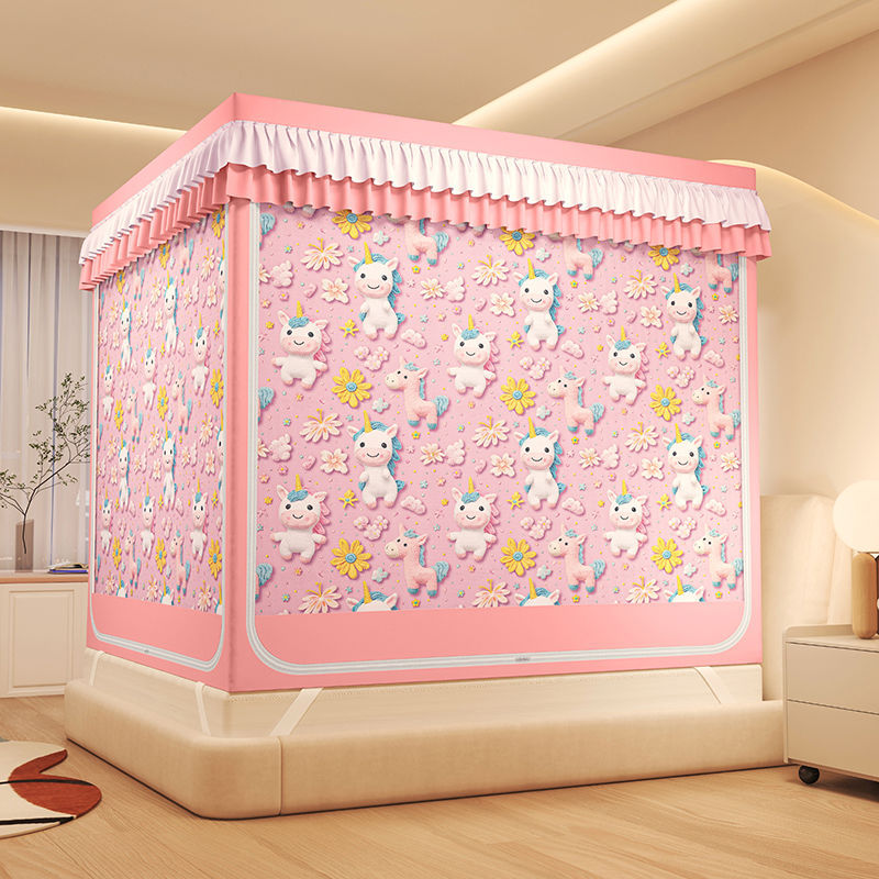 새로운 만화 인쇄 가정용 빛 차단 침대 커튼 통합 모기장 1.8m 침대 커튼 침실 완전히 밀폐 된 어린이