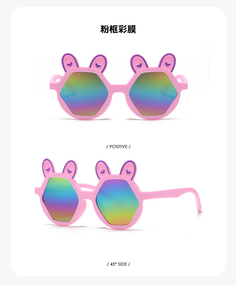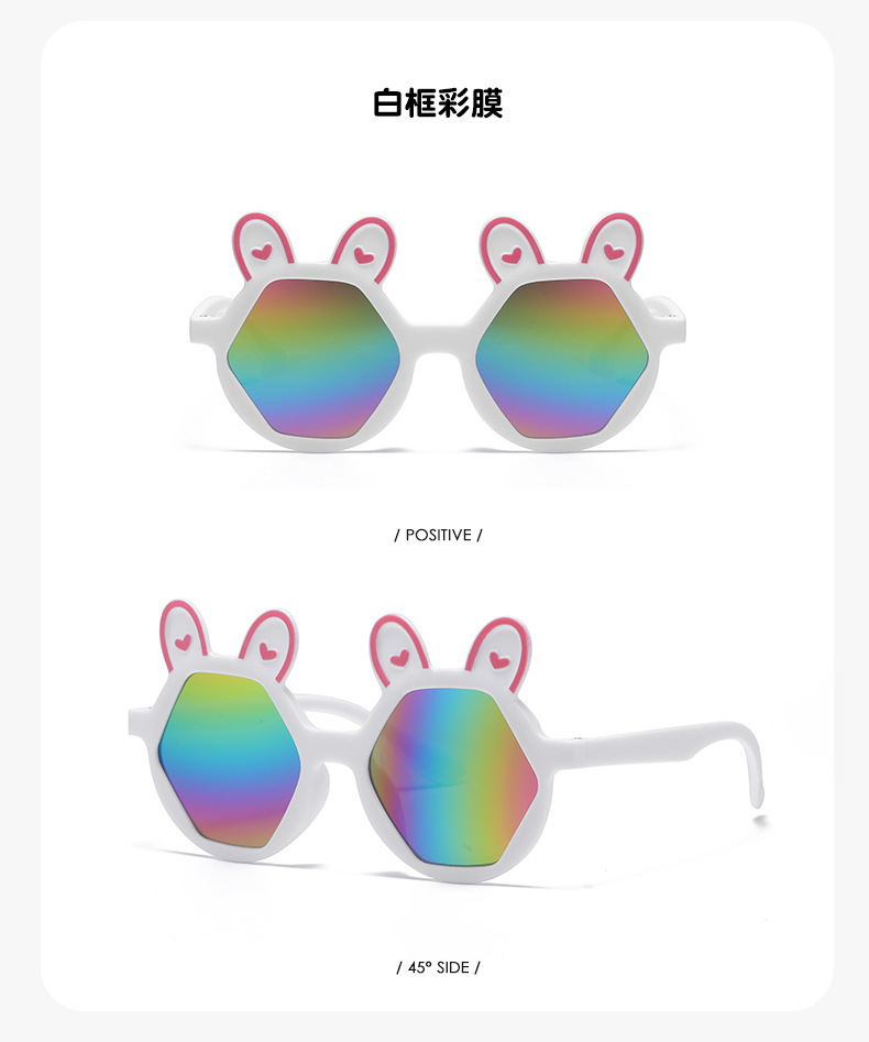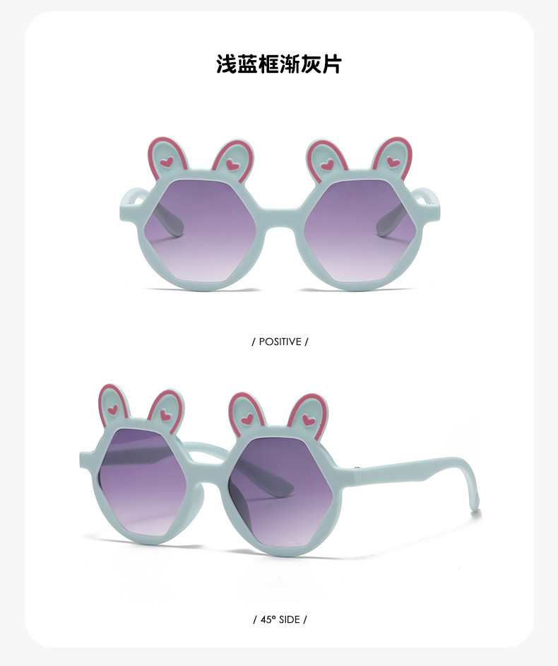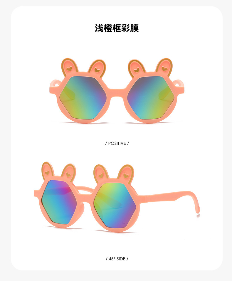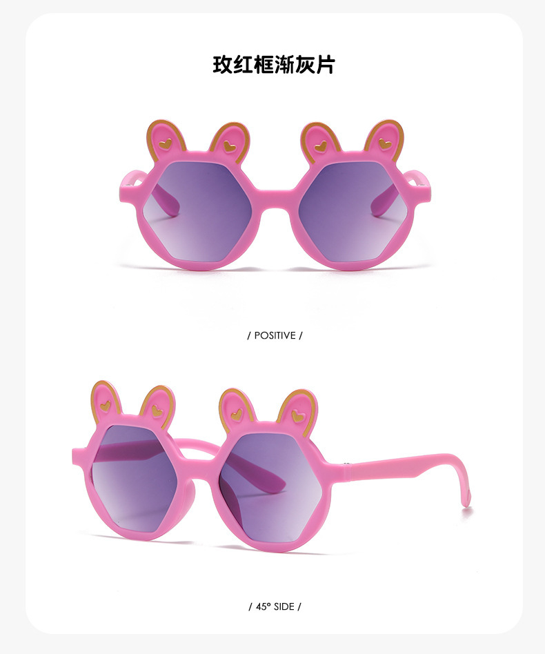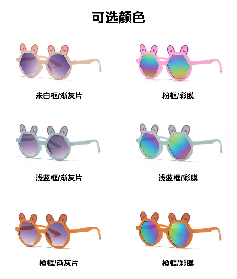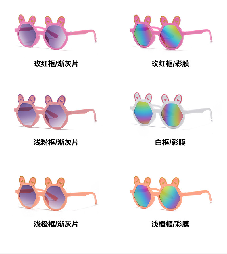 새로운 패션 만화 어린이 선글라스 귀여운 토끼 다각형 안경 귀여운 아기 양산 장식 선글라스 도매