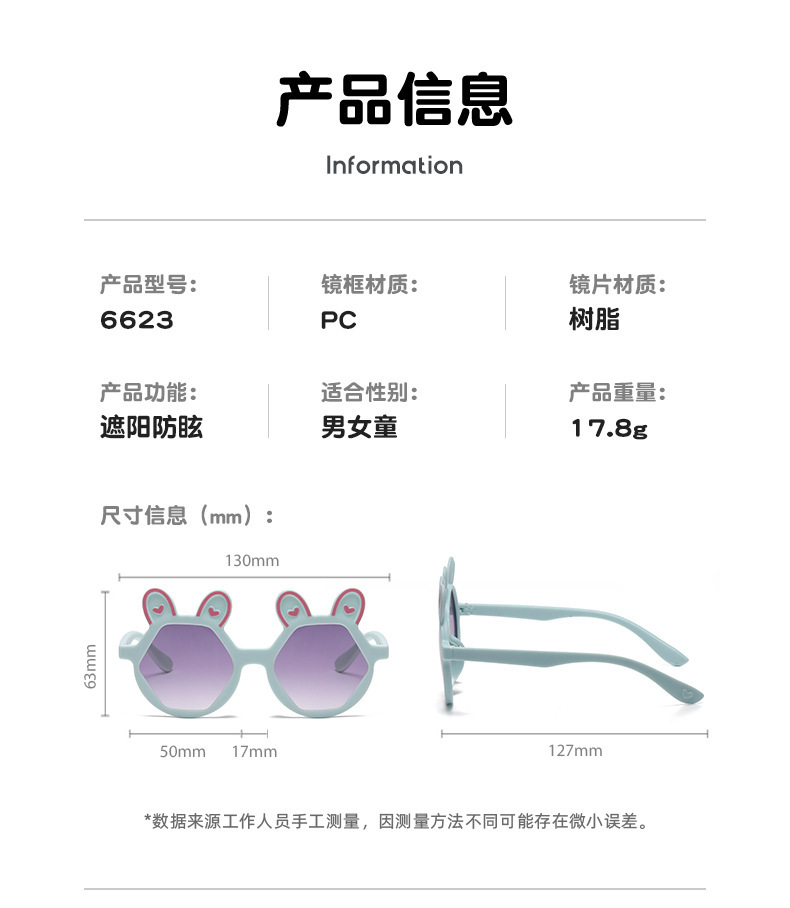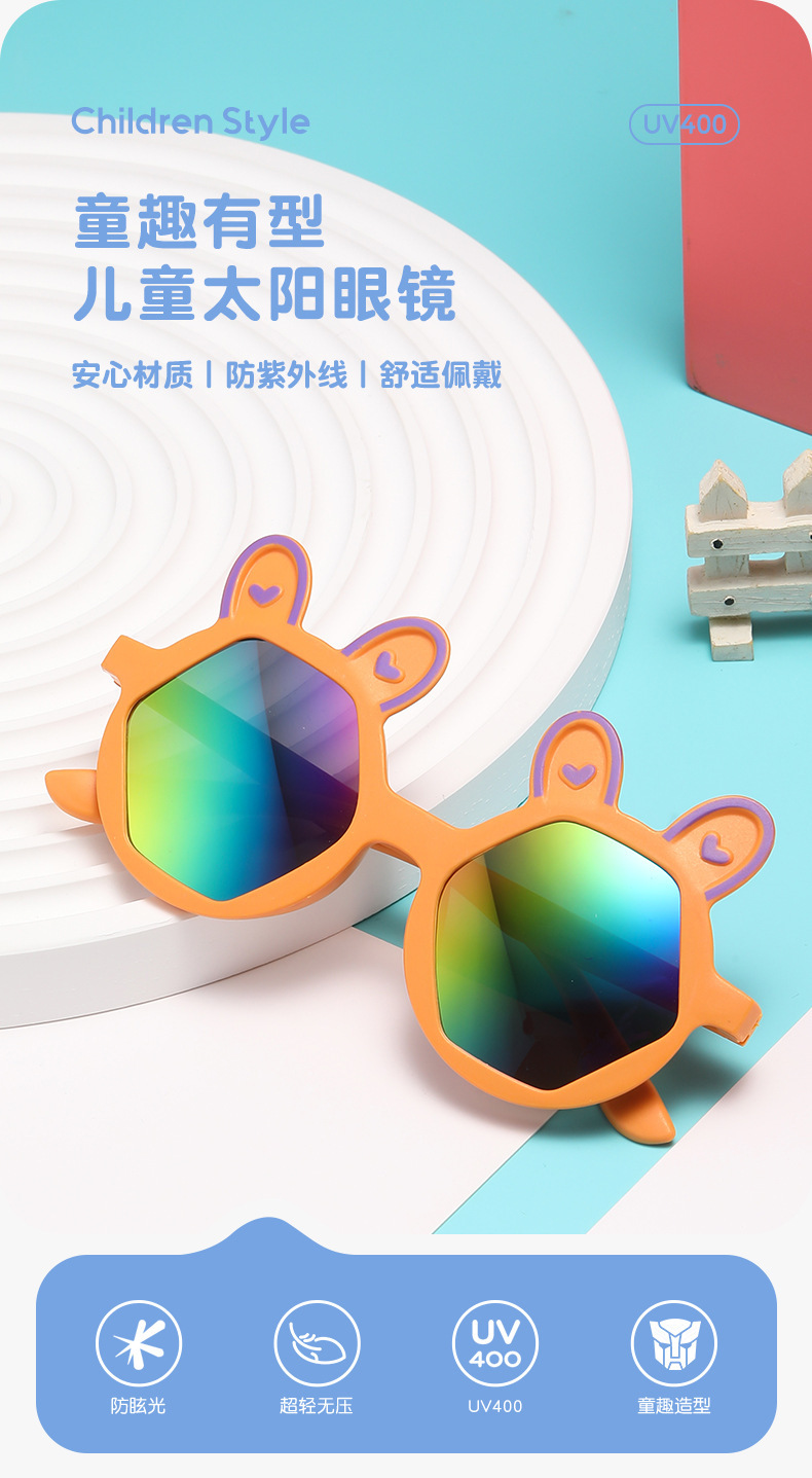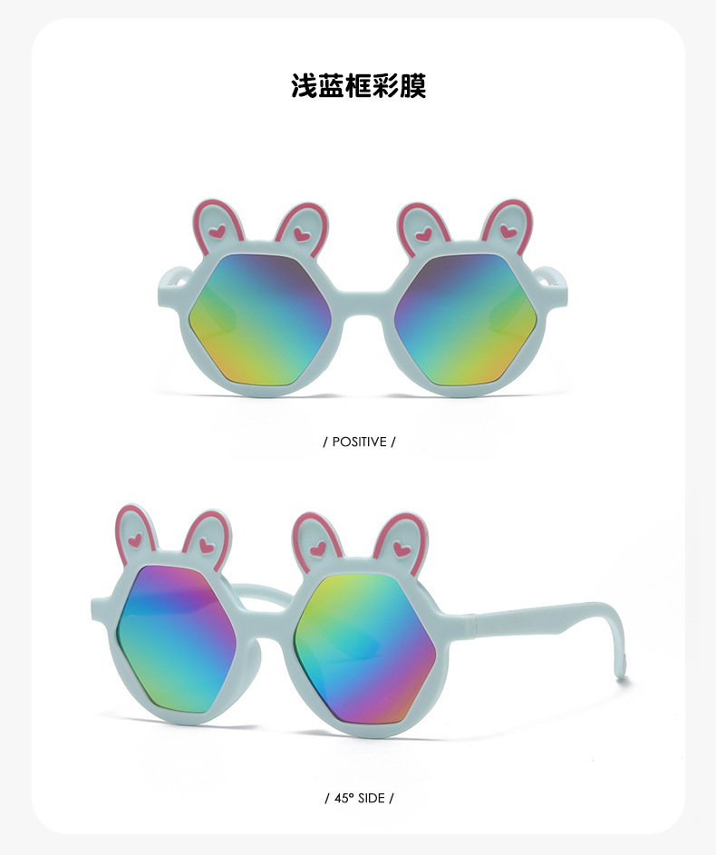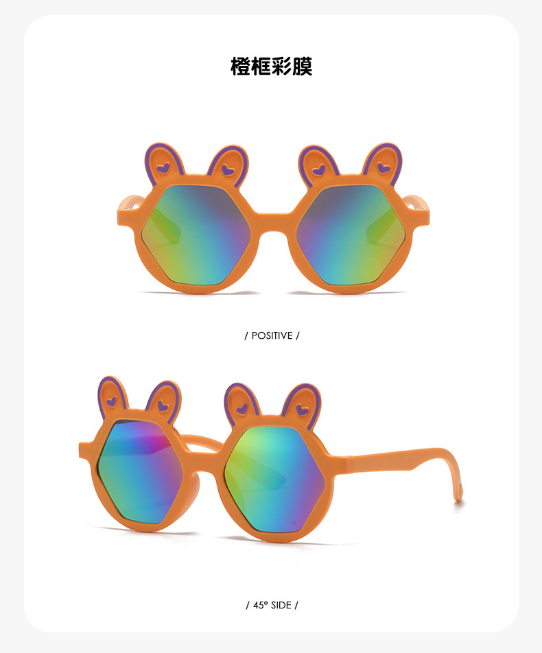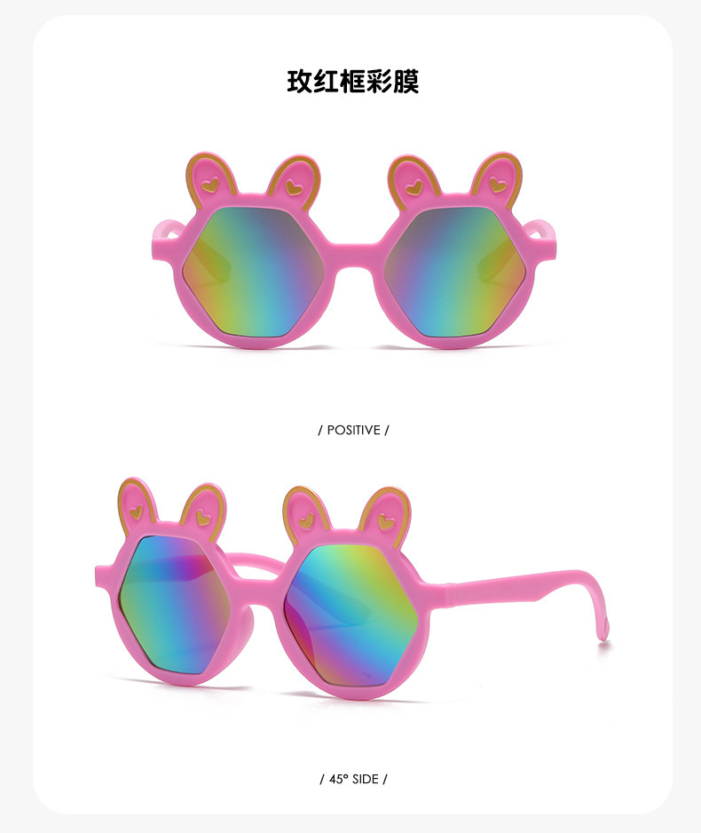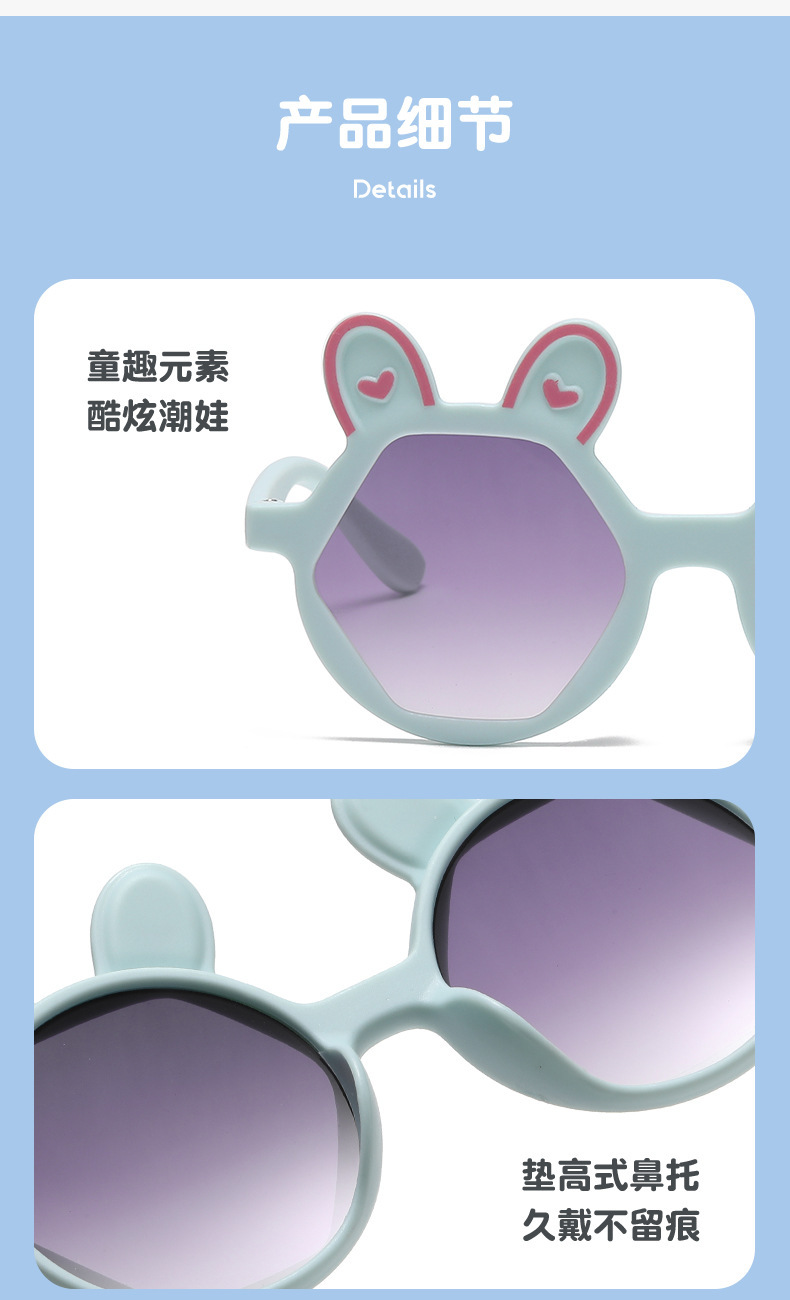 새로운 패션 만화 어린이 선글라스 귀여운 토끼 다각형 안경 귀여운 아기 양산 장식 선글라스 도매
