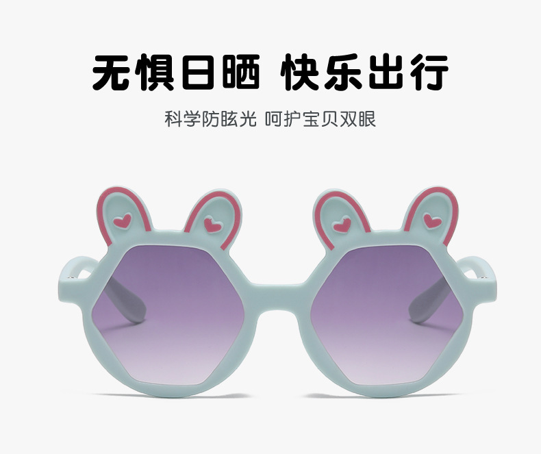 새로운 패션 만화 어린이 선글라스 귀여운 토끼 다각형 안경 귀여운 아기 양산 장식 선글라스 도매스토어 가기