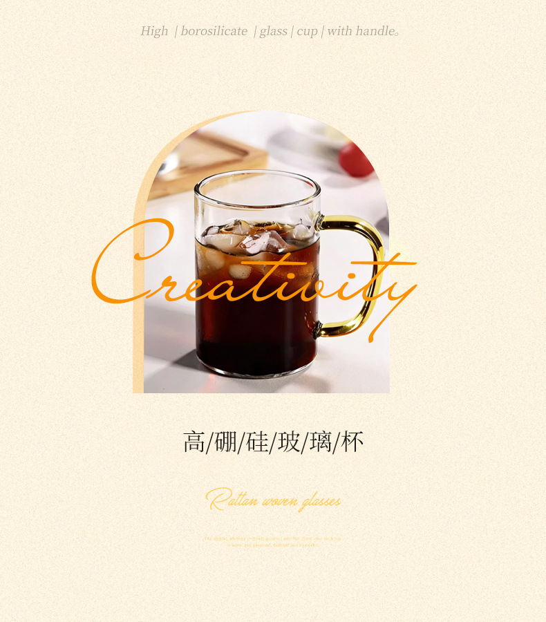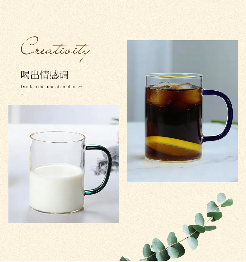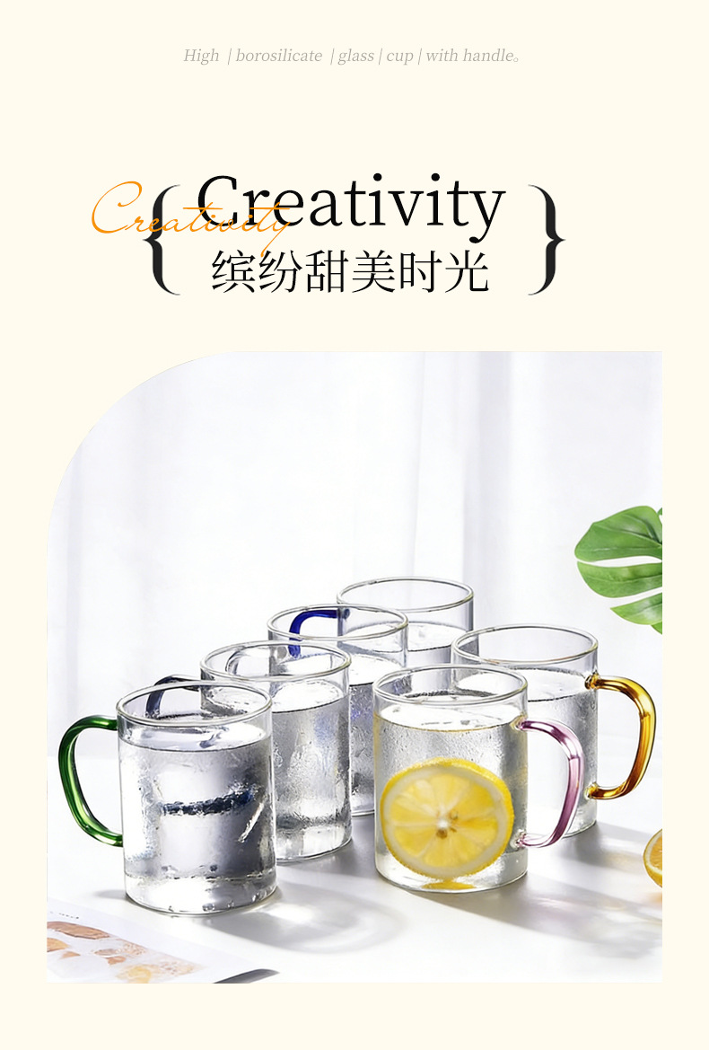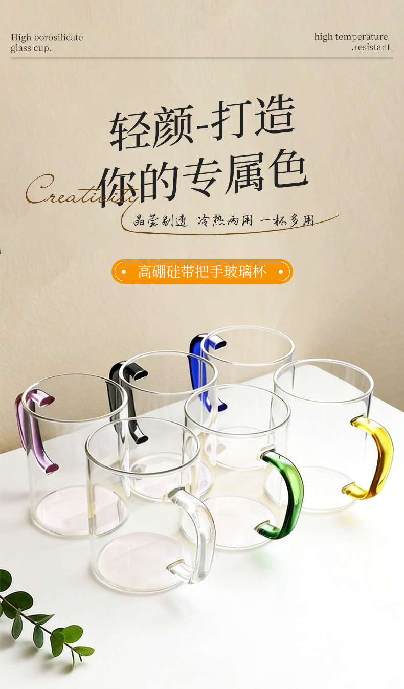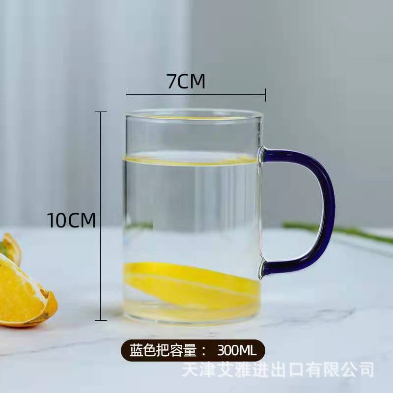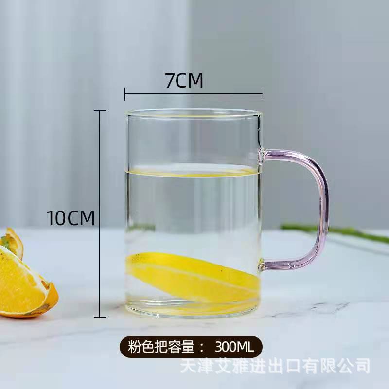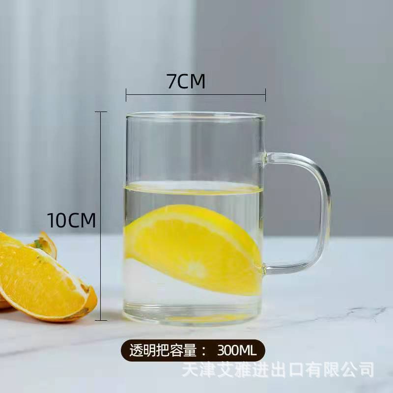 높은 붕규산 유리 컵 핸들 컵 마시는 물 가정용 고온 저항하는 가정용 접대 물 컵 티 컵 세트