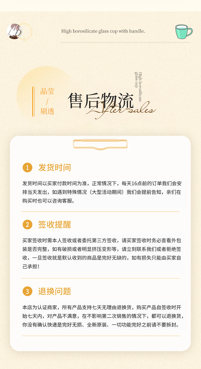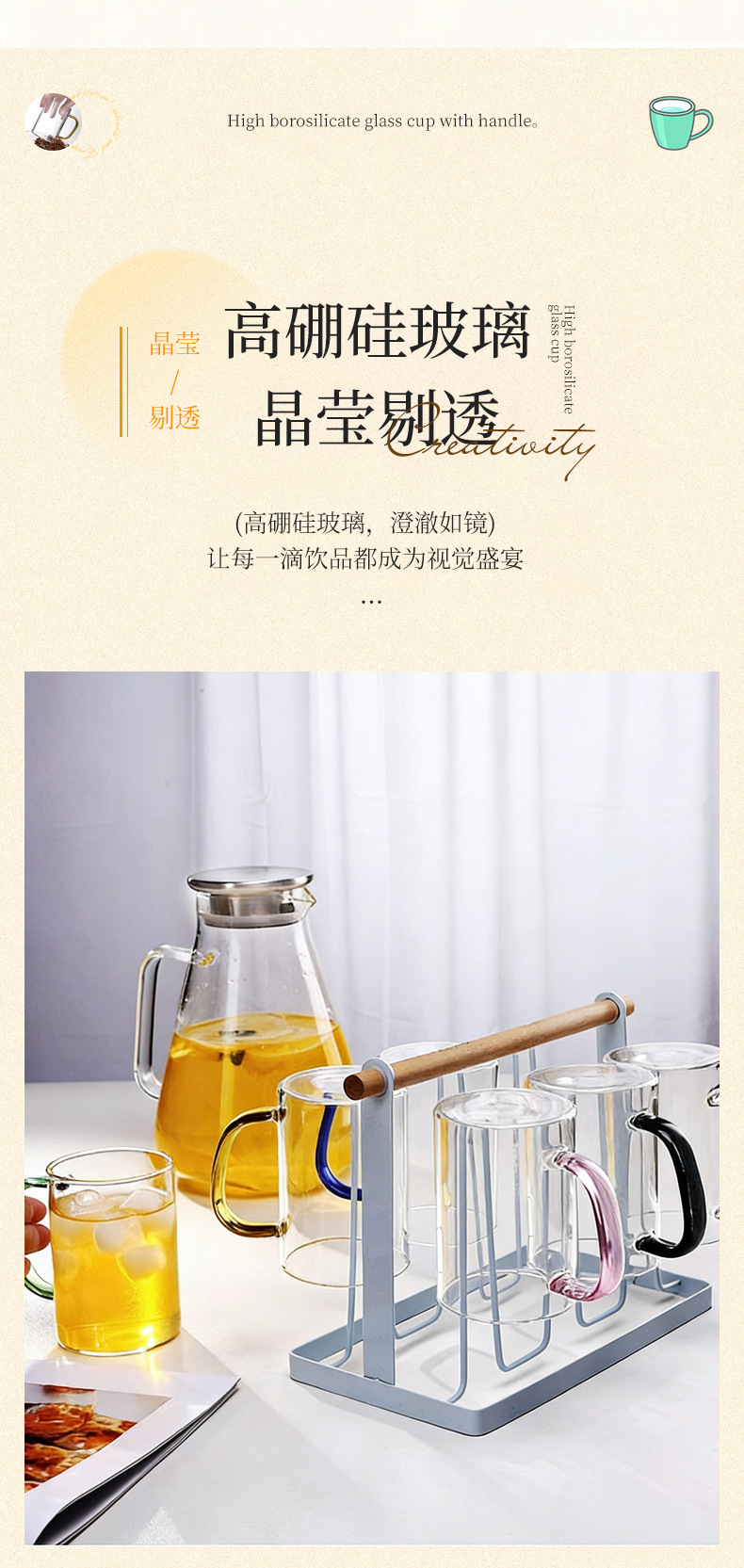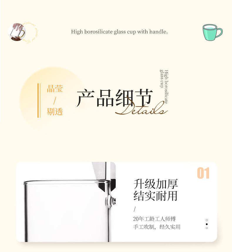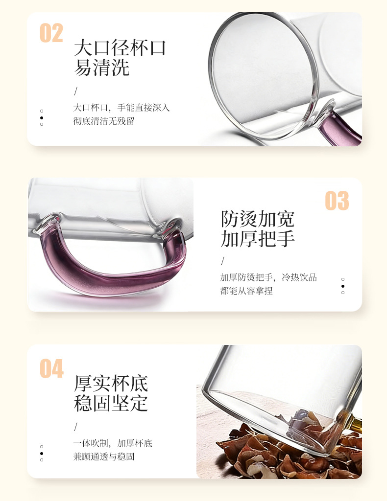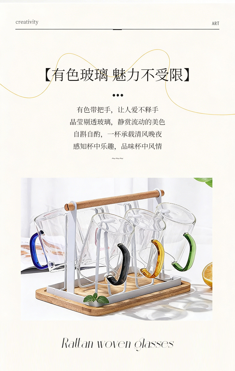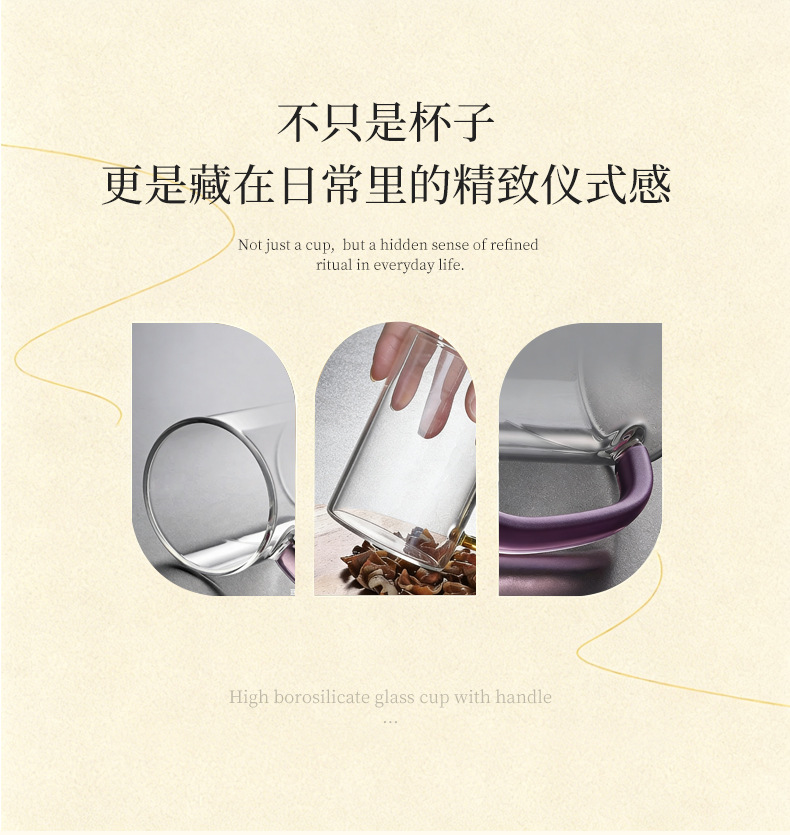 높은 붕규산 유리 컵 핸들 컵 마시는 물 가정용 고온 저항하는 가정용 접대 물 컵 티 컵 세트