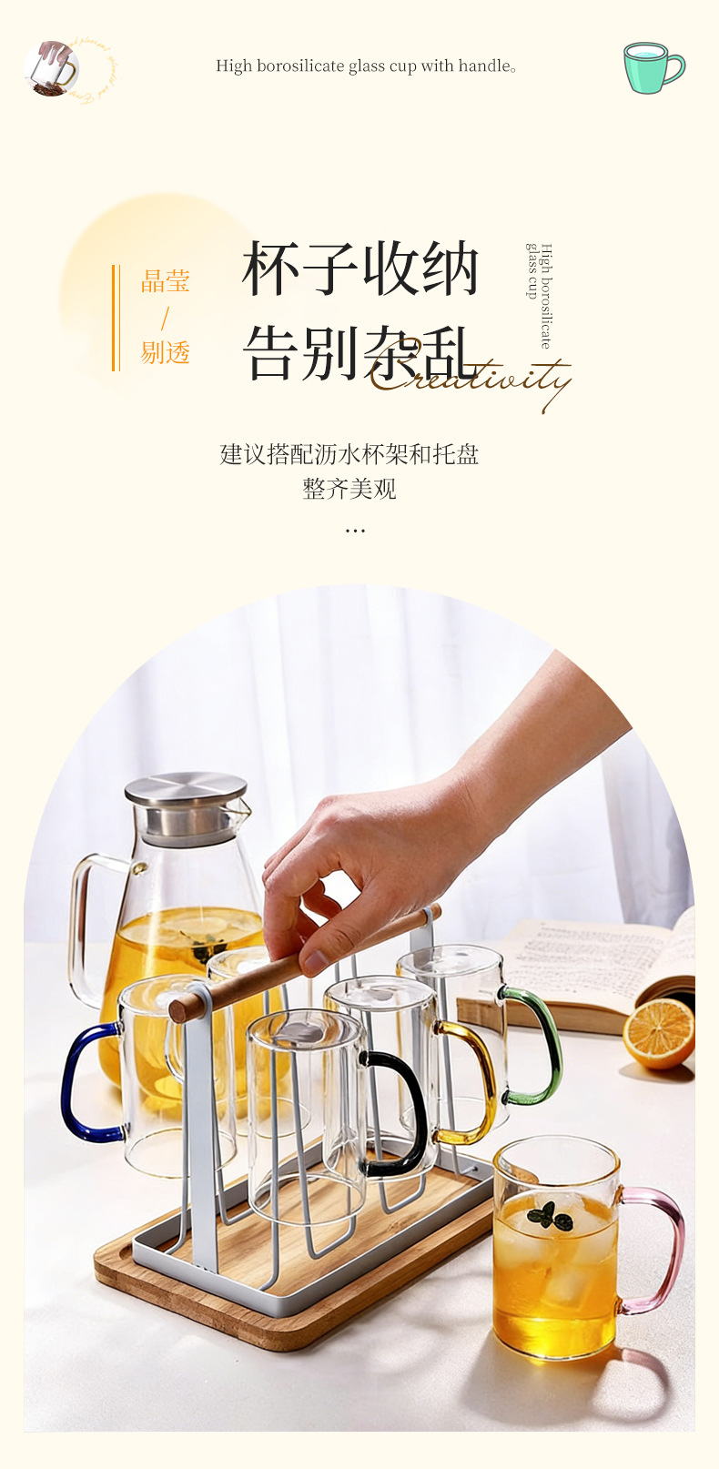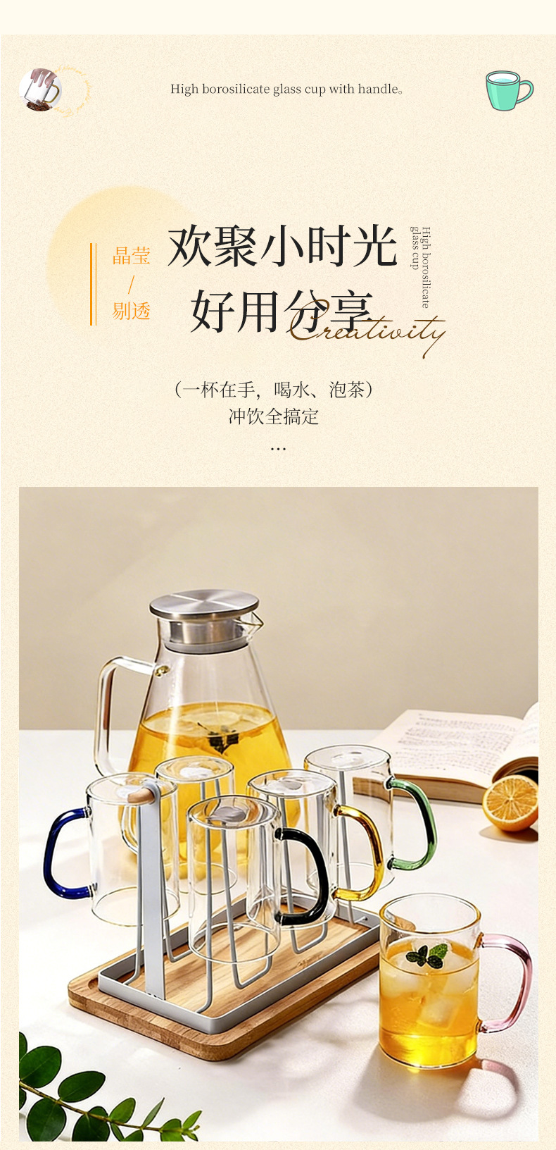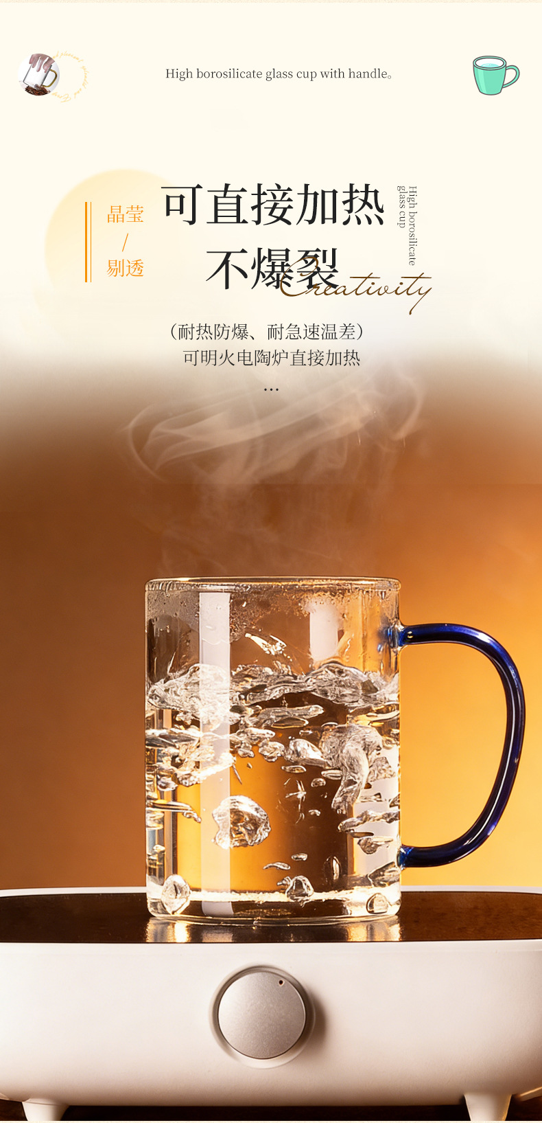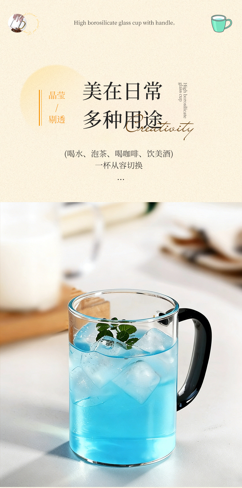 높은 붕규산 유리 컵 핸들 컵 마시는 물 가정용 고온 저항하는 가정용 접대 물 컵 티 컵 세트