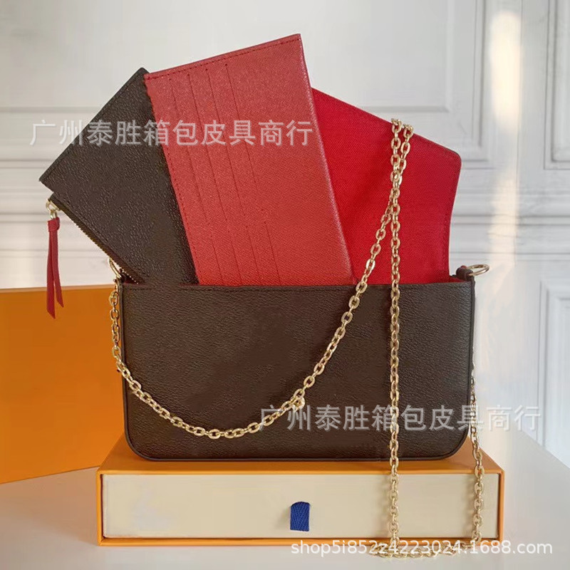 유럽과 미국의 국경 2023 새로운 오래된 꽃 유행 어깨 크로스 바디 백 3 피스 세트 3 대 1 봉투 체인 백스토어 가기