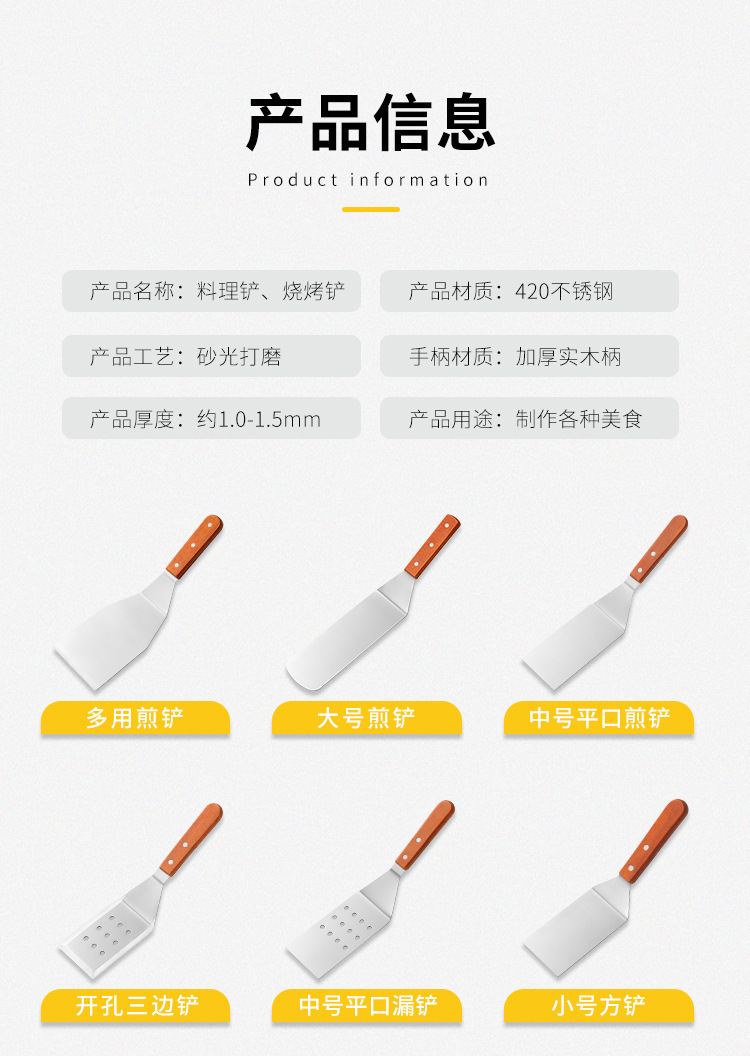 주방용품 요리 주걱 스테인레스 스틸 프라이팬 주걱 철판 요리 주걱 바베큐 도구 세트 공장 스팟 도매 스테이크 주걱스토어 가기
