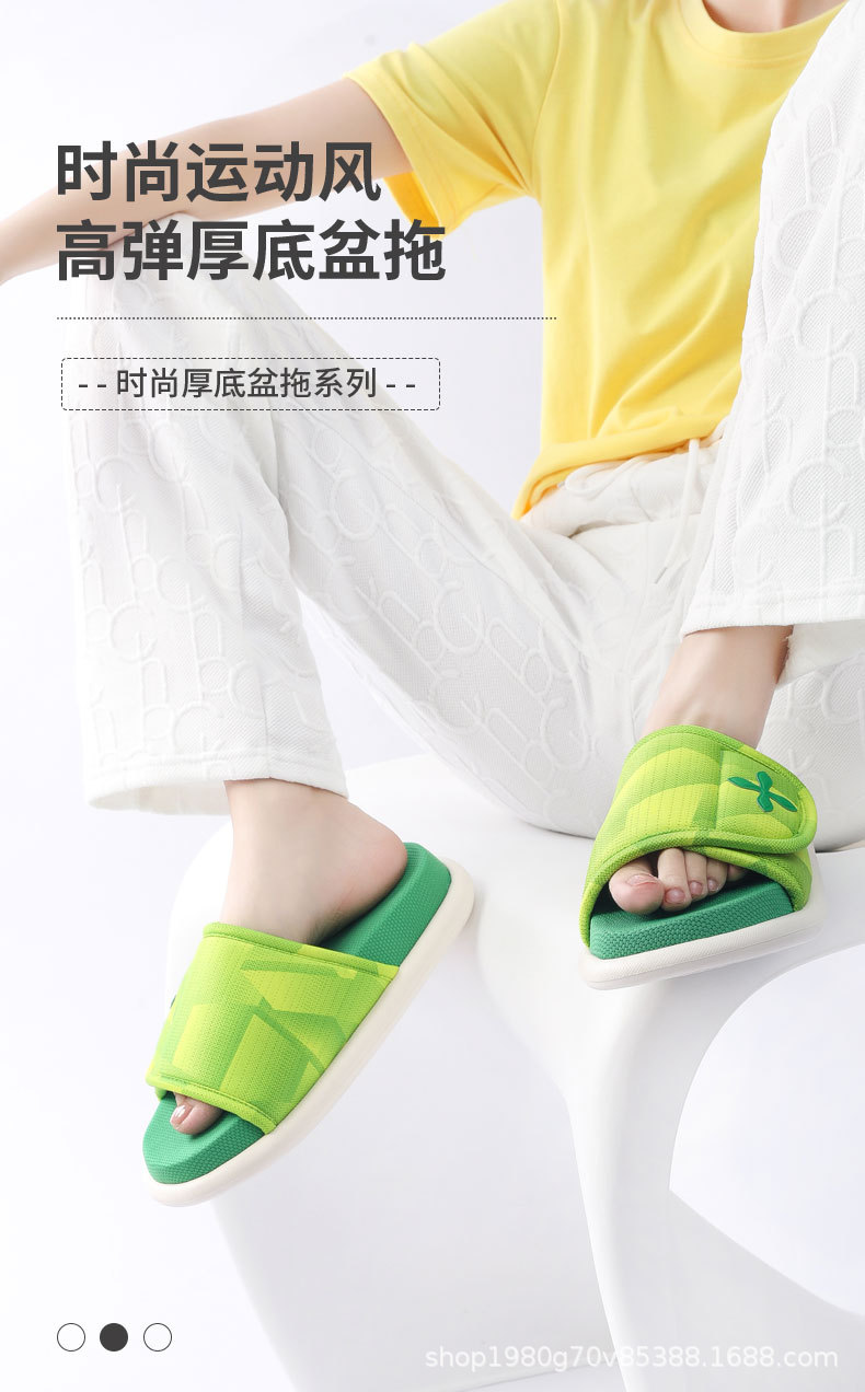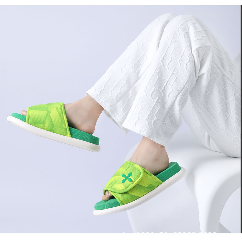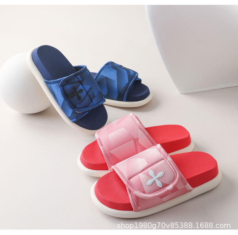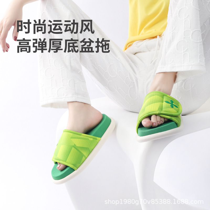 패셔너블한 스포츠 스타일 조절 가능한 고탄성 두꺼운 밑창 사계절 개방형 미끄럼 방지 나무 바닥 면 봄 여름 홈 슬리퍼스토어 가기