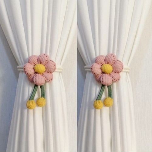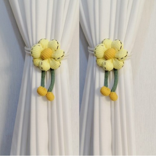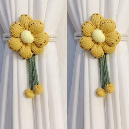 [귀여운] 해바라기 꽃 커튼 클립 타이 로프 홈 가구 장식 타이 벨트 홈 조절 가능
