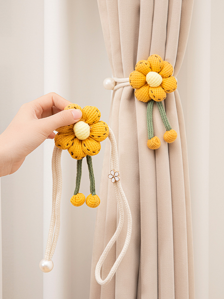 [귀여운] 해바라기 꽃 커튼 클립 타이 로프 홈 가구 장식 타이 벨트 홈 조절 가능스토어 가기