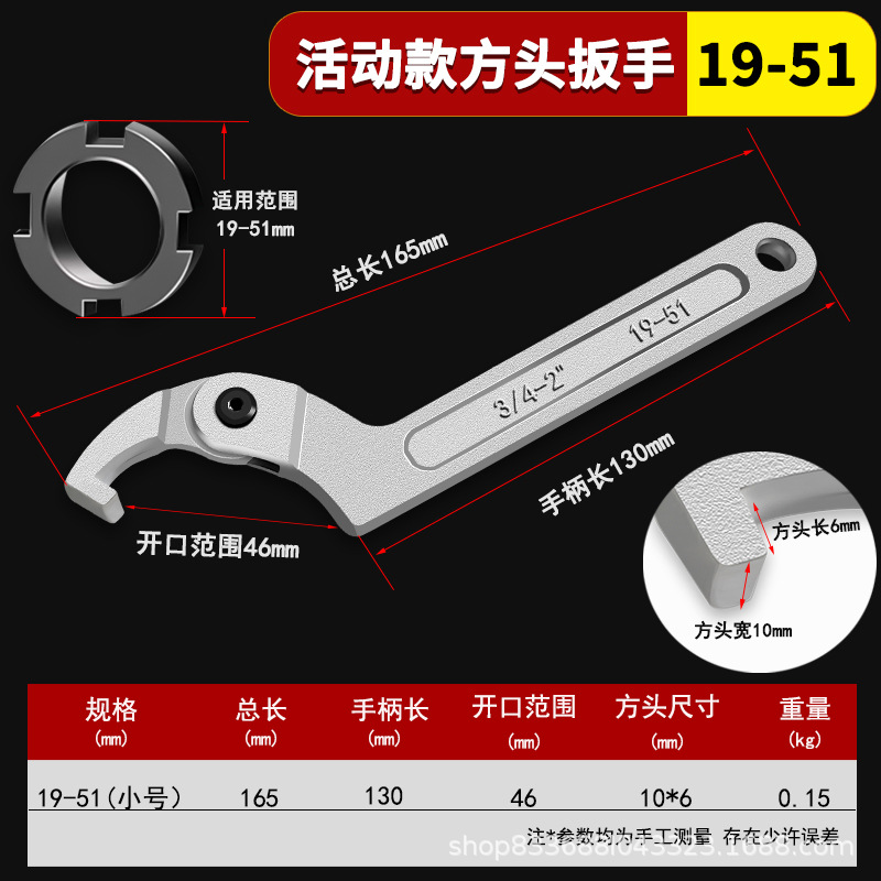 • 산업용 등급 초승달 렌치 19-51mm 정사각형 헤드