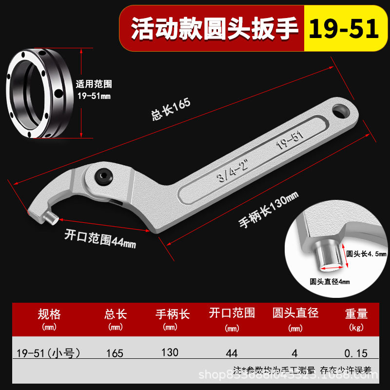 • 산업용 등급 초승달 렌치 19-51mm 둥근 머리