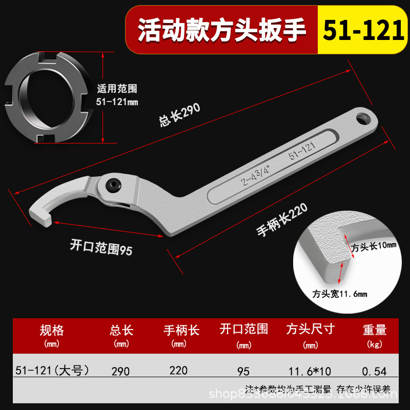 • 산업용 등급 초승달 렌치 51-121mm 정사각형 헤드
