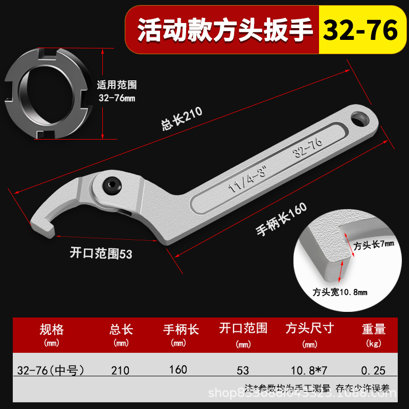 • 산업용 등급 초승달 렌치 32-76mm 사각 헤드