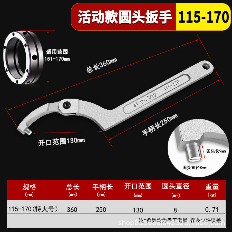 • 산업용 등급 초승달 렌치 115-170mm 둥근 머리