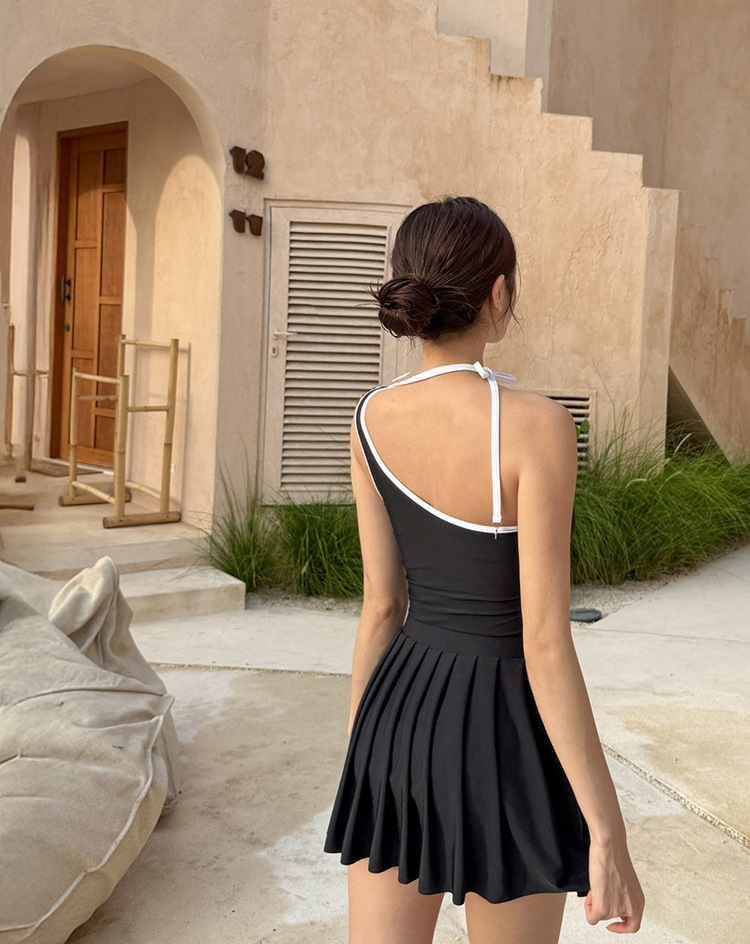 여성용 새 수영복, 새 단색, 작은 가슴, 보수적인 배 커버, 슬리밍, 온천 수영복, 짧은 스커트, 한국 스타일 원피스
