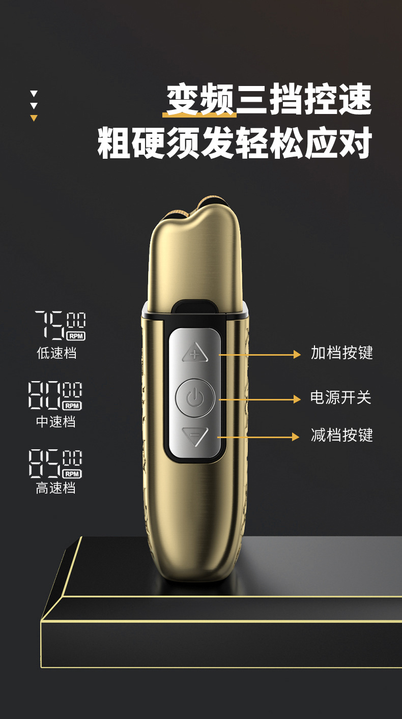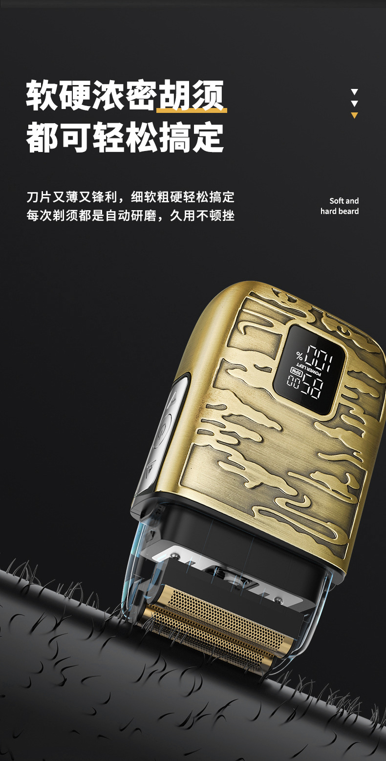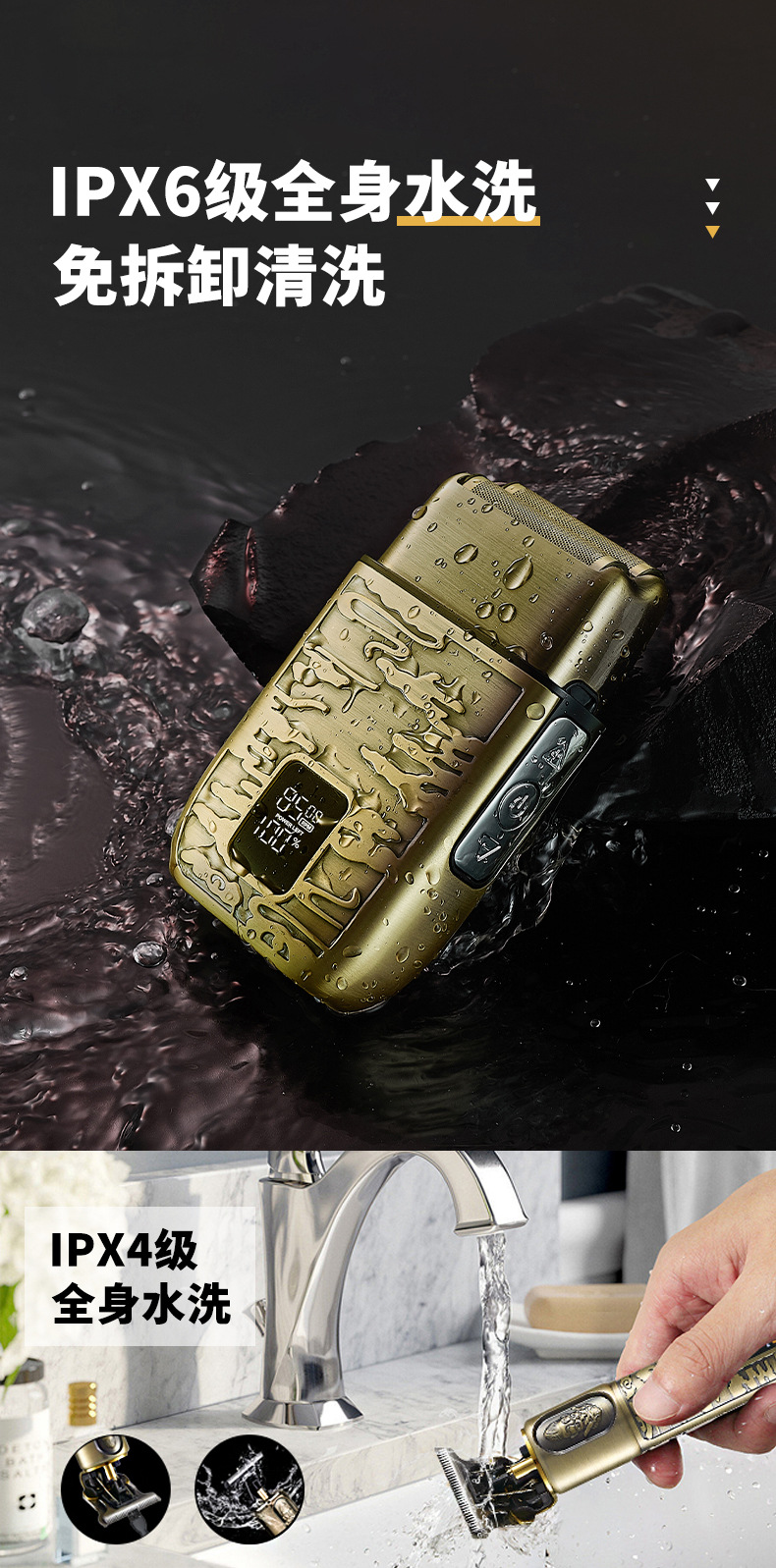 产品特点:全身防水 液晶电量显示 剃须刀3档转速调节 金属机身