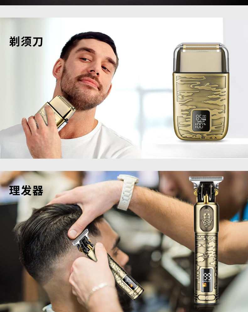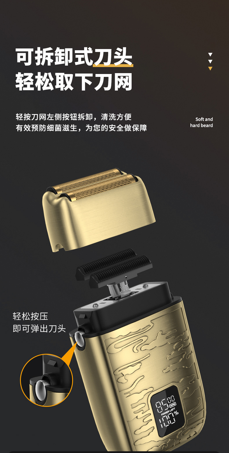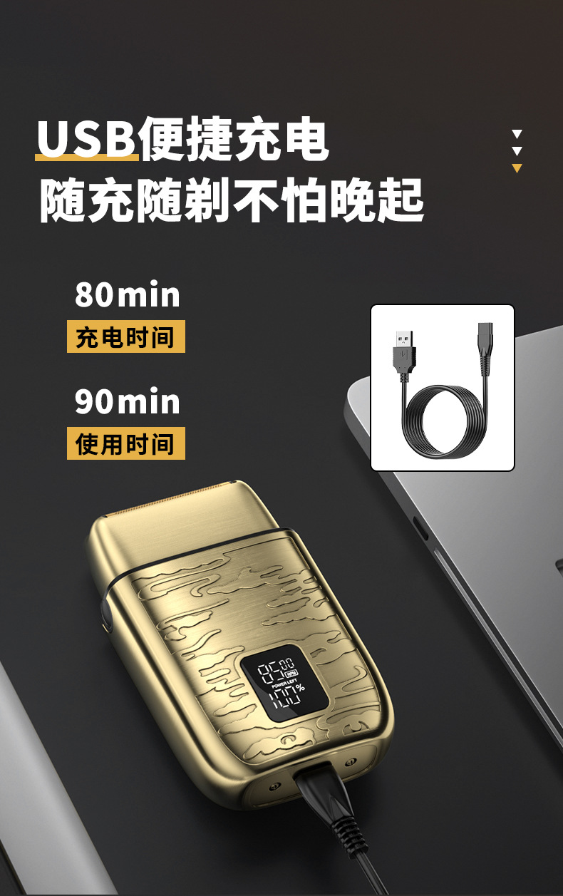 产品特点:全身防水 液晶电量显示 剃须刀3档转速调节 金属机身