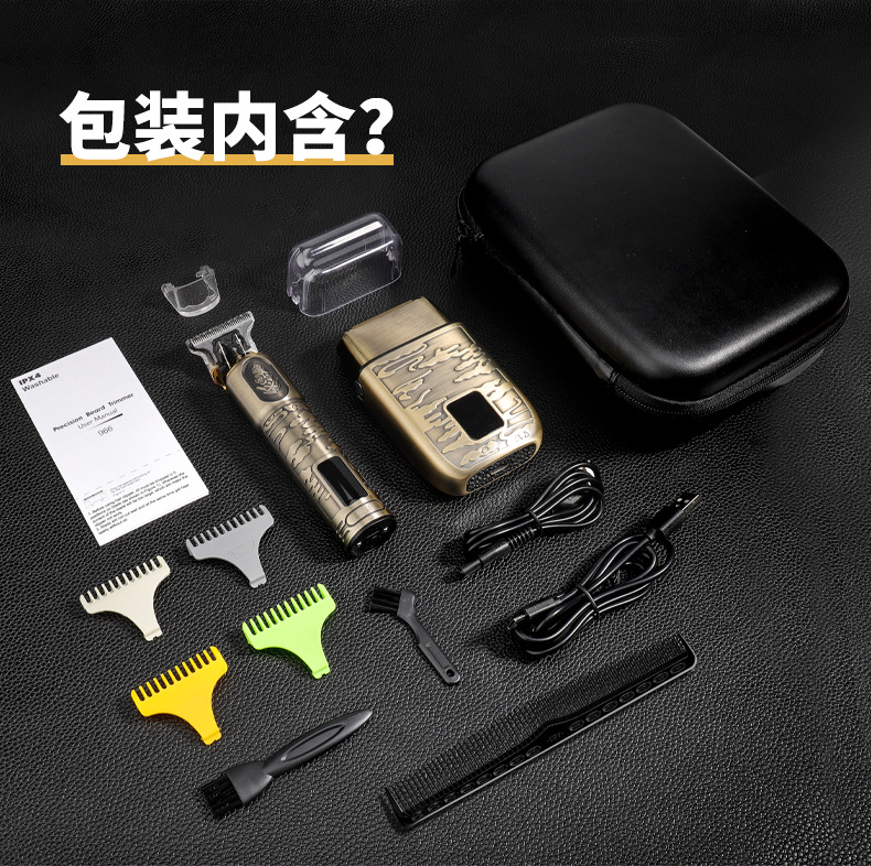 包含配件:剃须刀*1 理发器*1 彩色限位梳*4(1 2 3 4mm)梳子*1 USB充电线*2 清洁刷*2 英文说明书*1 EVA包*1