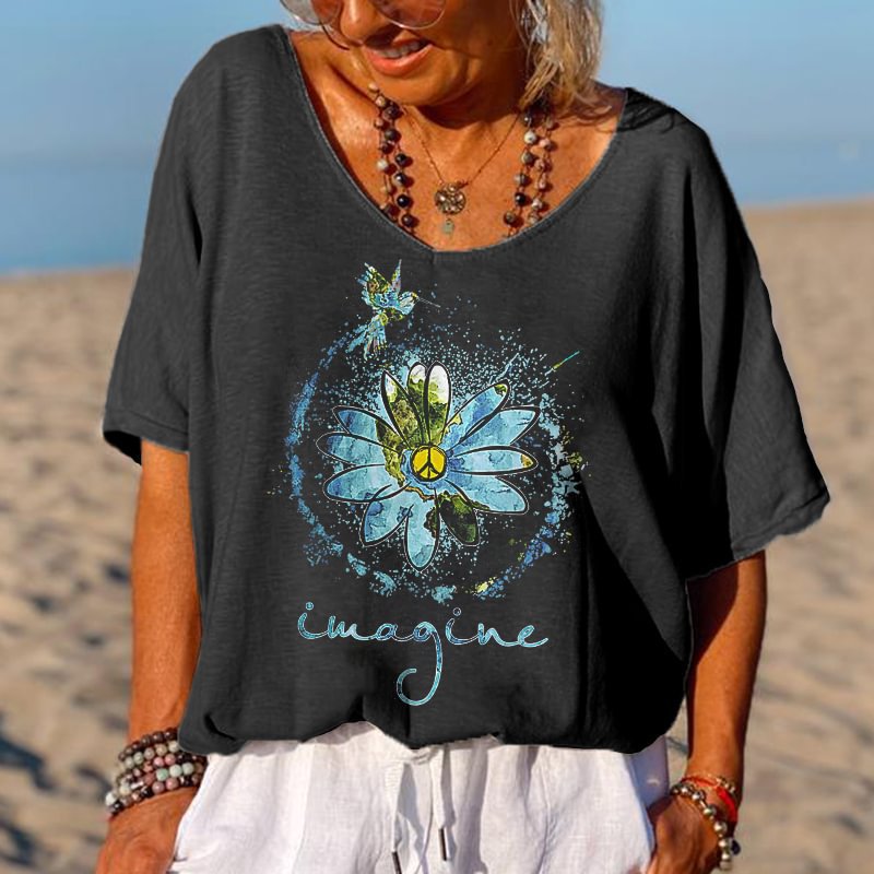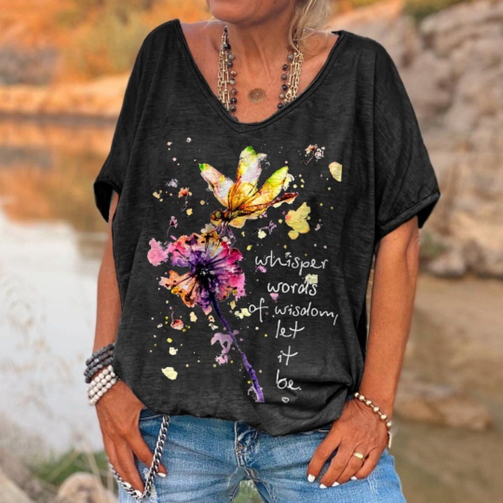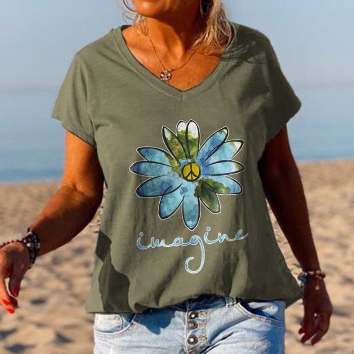 국경 간 AliExpress 대외 무역 유럽과 미국 여성 의류 여성용 V 넥 3D 인쇄 반팔 꽃 패션 반팔 새 티셔츠스토어 가기