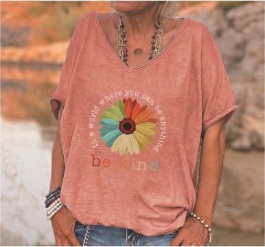 국경 간 AliExpress 대외 무역 유럽과 미국 여성 의류 여성용 V 넥 3D 인쇄 반팔 꽃 패션 반팔 새 티셔츠