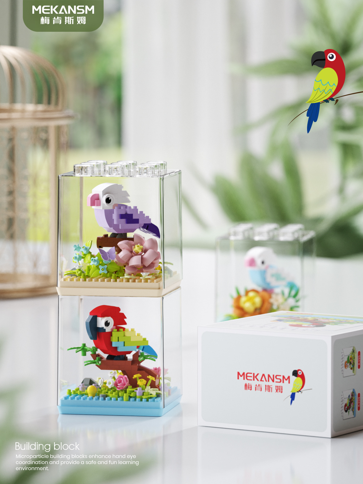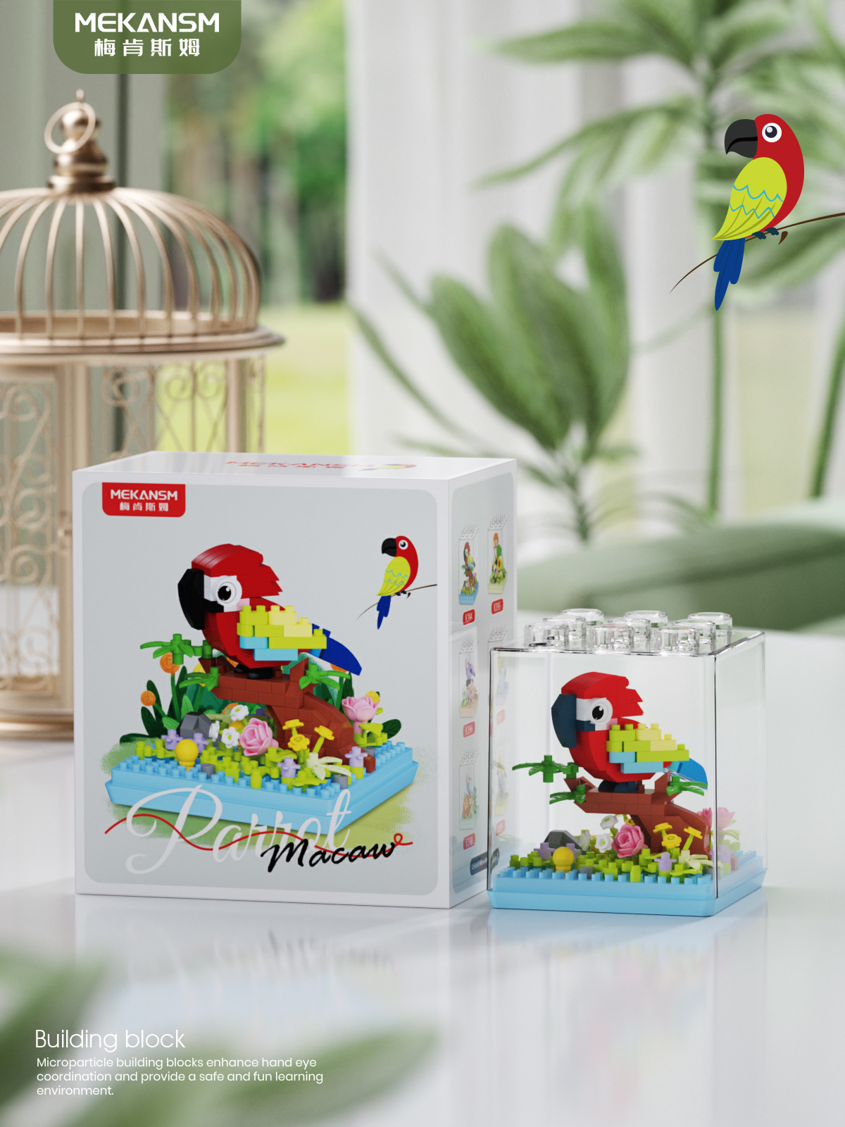 [도매 배송] Parrot Animal Building Blocks는 LEGO 교육용 조립 장식품과 호환됩니다. 어린이날 선물