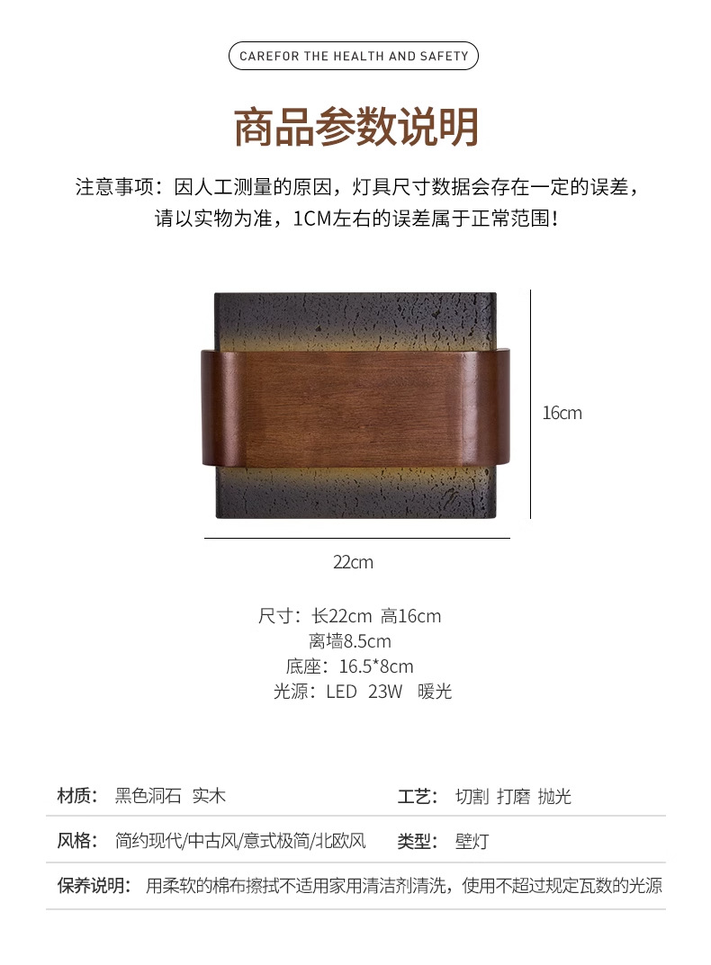• [블랙 석회화] 길이 22*높이 16cm 23W 따뜻한 빛
