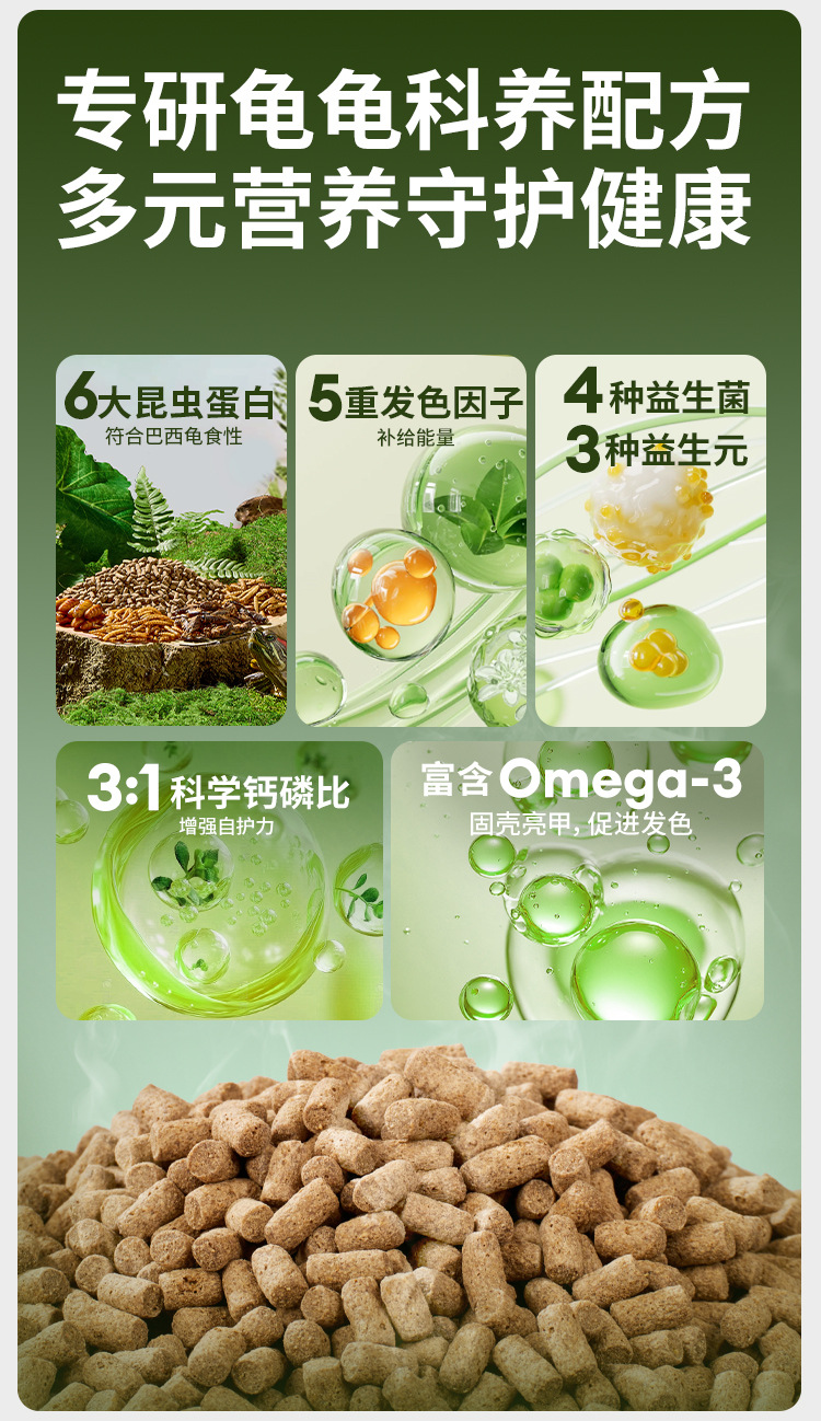 • 작은 입자 6-in-1 거북이 사료 600ml