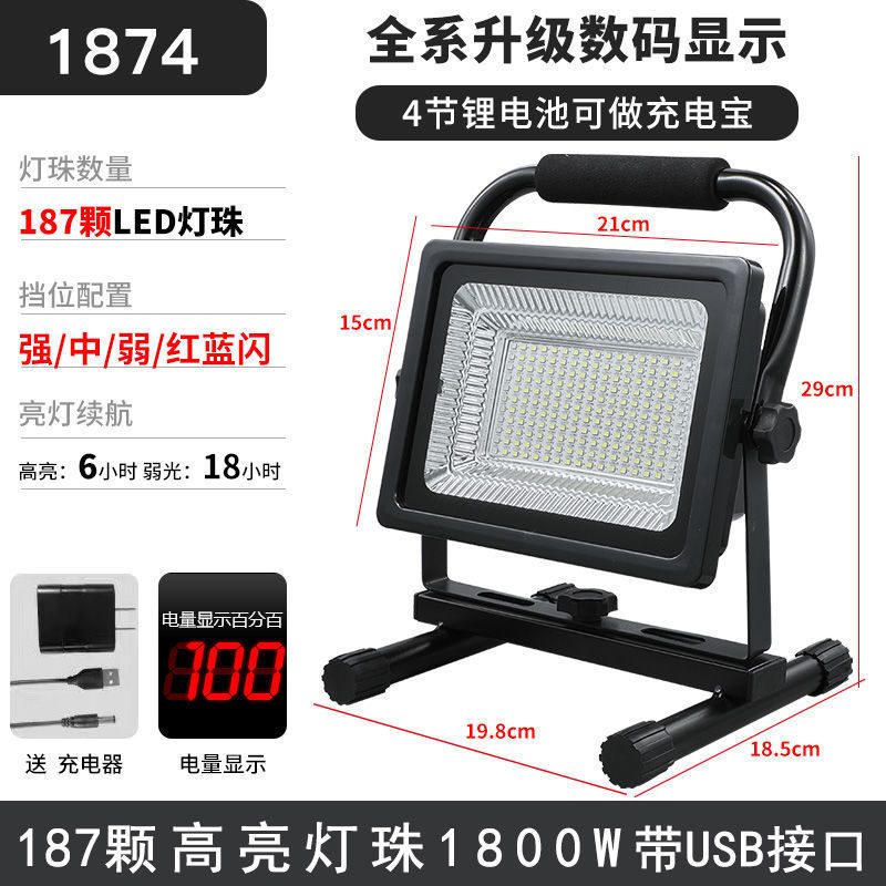 야외 조명 충전식 플러드 라이트 사이트 엔지니어링 비상 캠핑 라이트 캠핑 휴대용 강한 빛 슈퍼 브라이트
