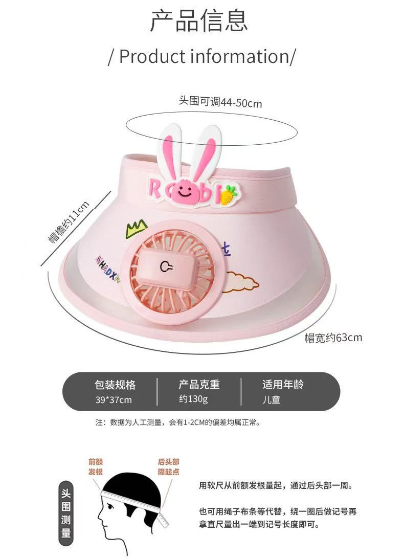 어린이용 선팬 모자, 햇빛 가리개 모자, 아기용 챙넓은 모자, 여자아이용 오픈탑 모자, 충전식 유아용 모자