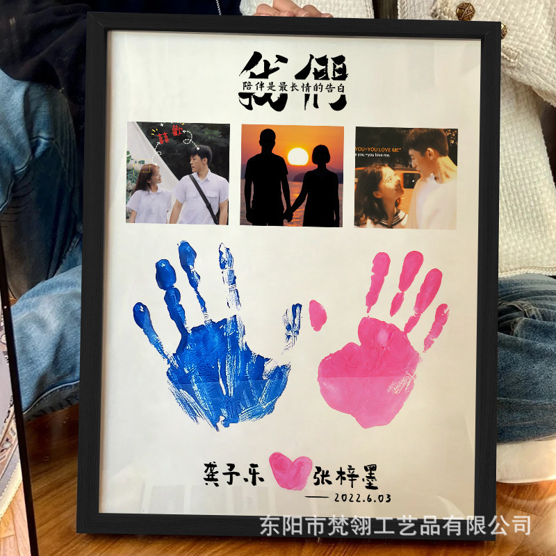 핸드 프린트 사진 프레임 나무 수제 diy 프레임 장식 어린이 커플 더블 표본 액자 테이블 공장 도매스토어 가기