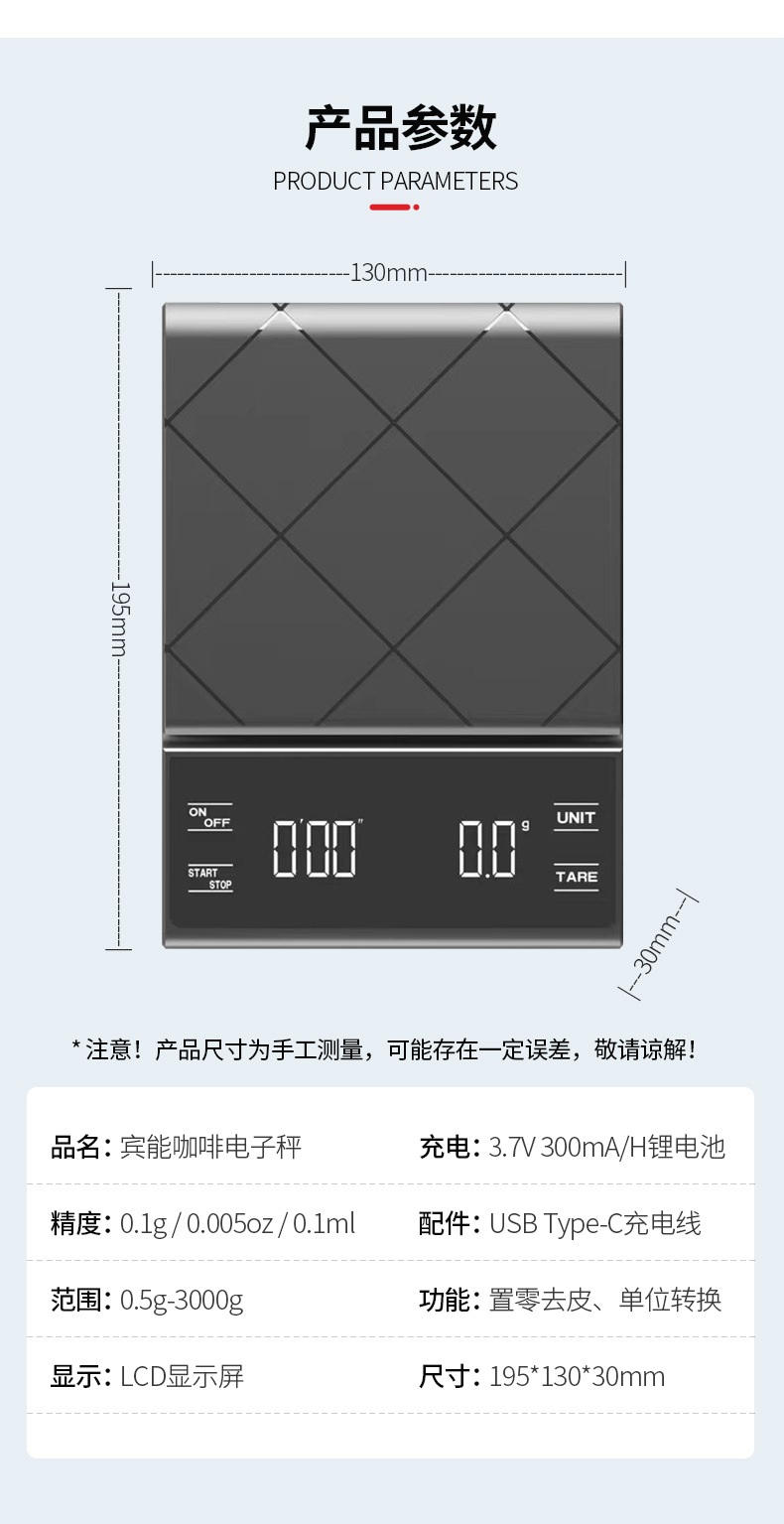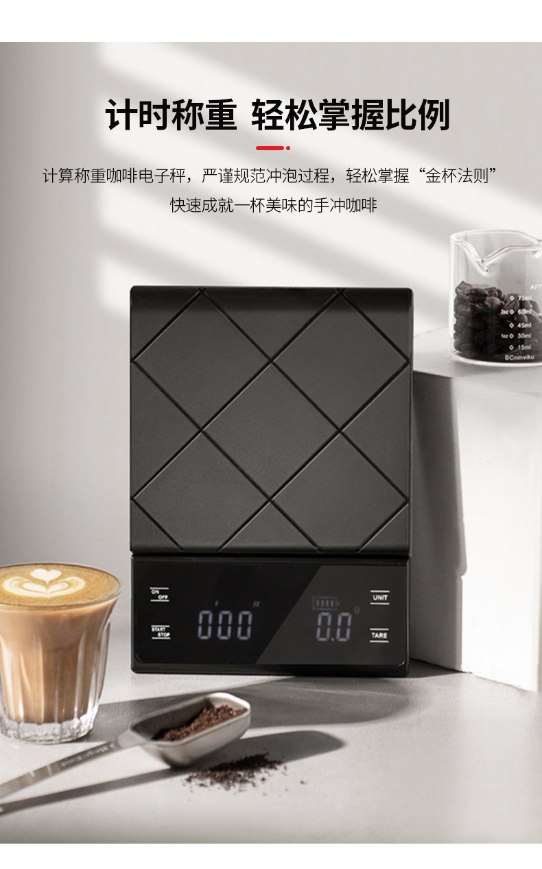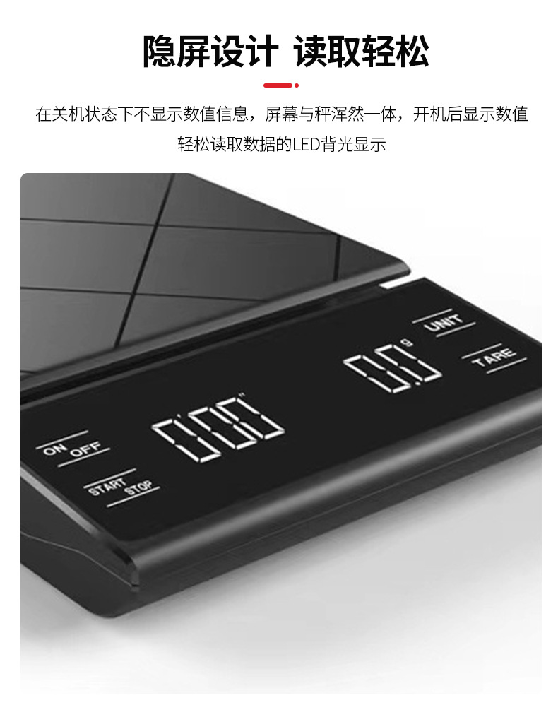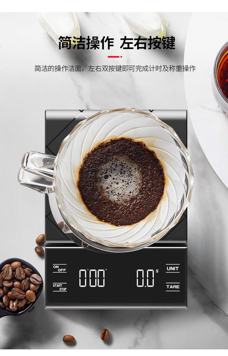 타이머가있는 공장 맞춤형 LED 터치 스크린 손으로 만든 커피 스케일 커피 전자 스케일 주방 바 베이킹 스케일