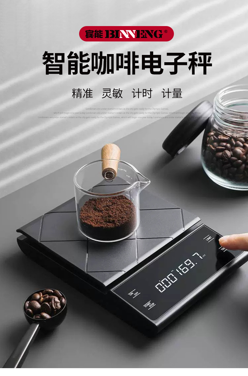 타이머가있는 공장 맞춤형 LED 터치 스크린 손으로 만든 커피 스케일 커피 전자 스케일 주방 바 베이킹 스케일스토어 가기