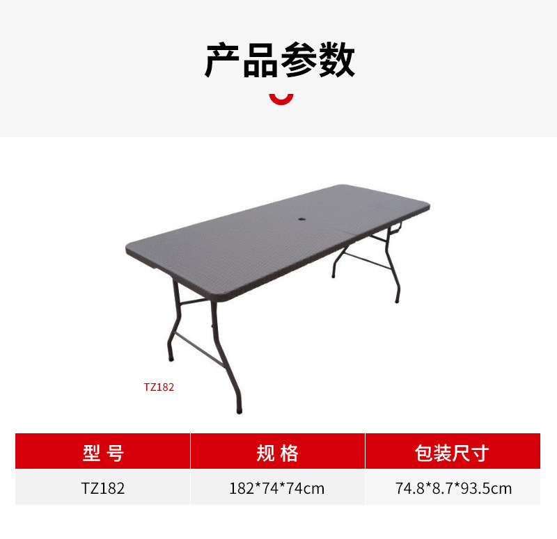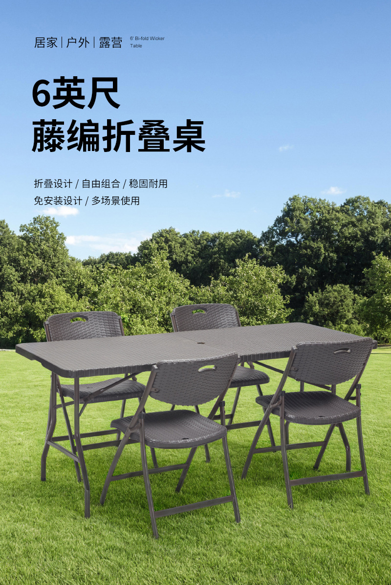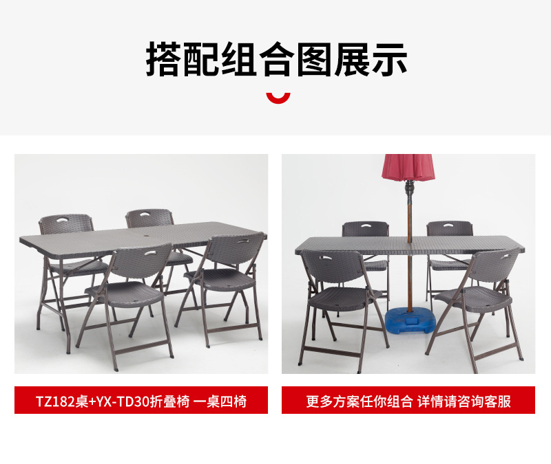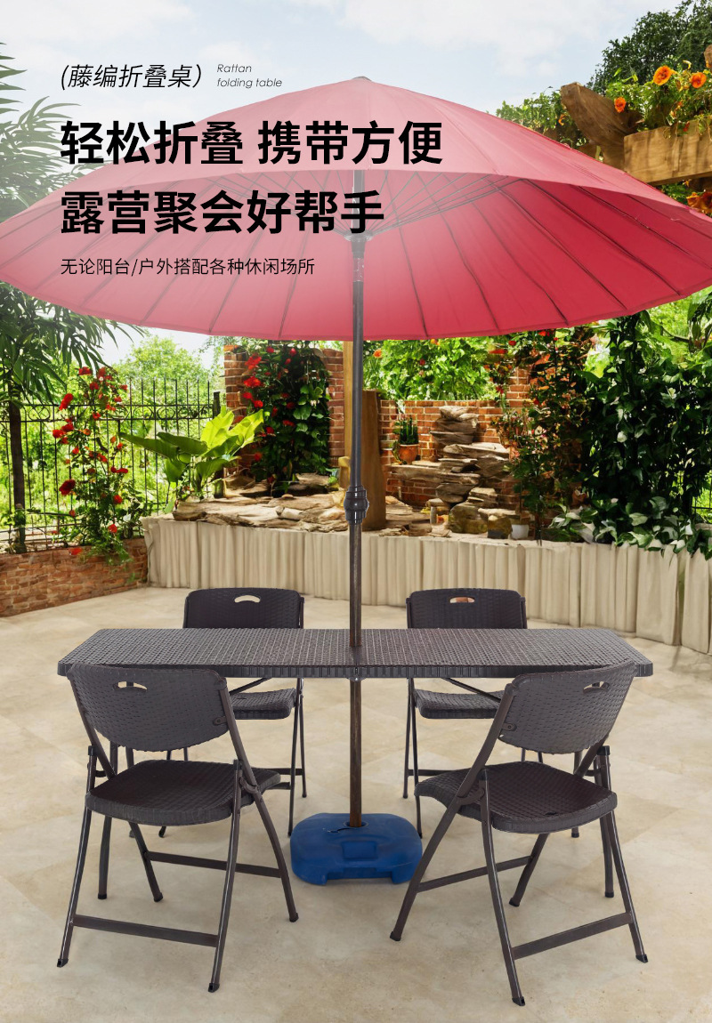 3~4인용 야외 우산이 있는 인터넷 연예인 레스토랑 카페 1.8m 등나무 접이식 야외 캠핑 긴 테이블