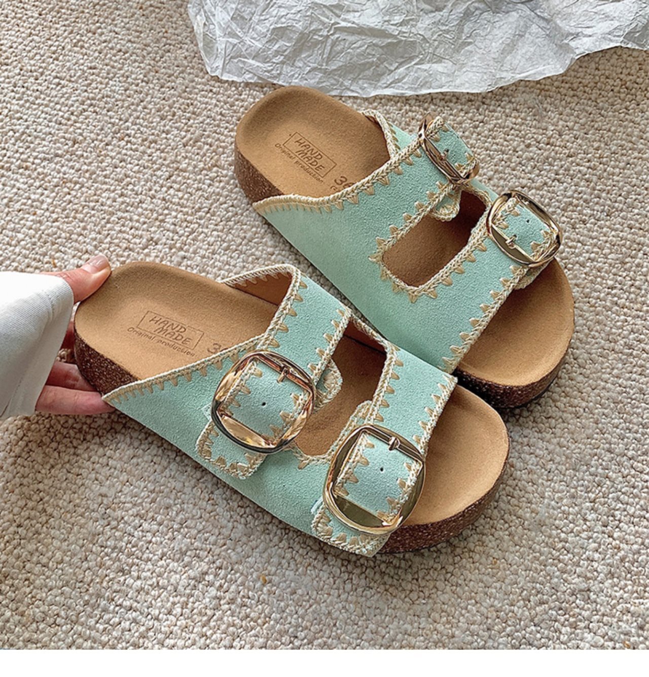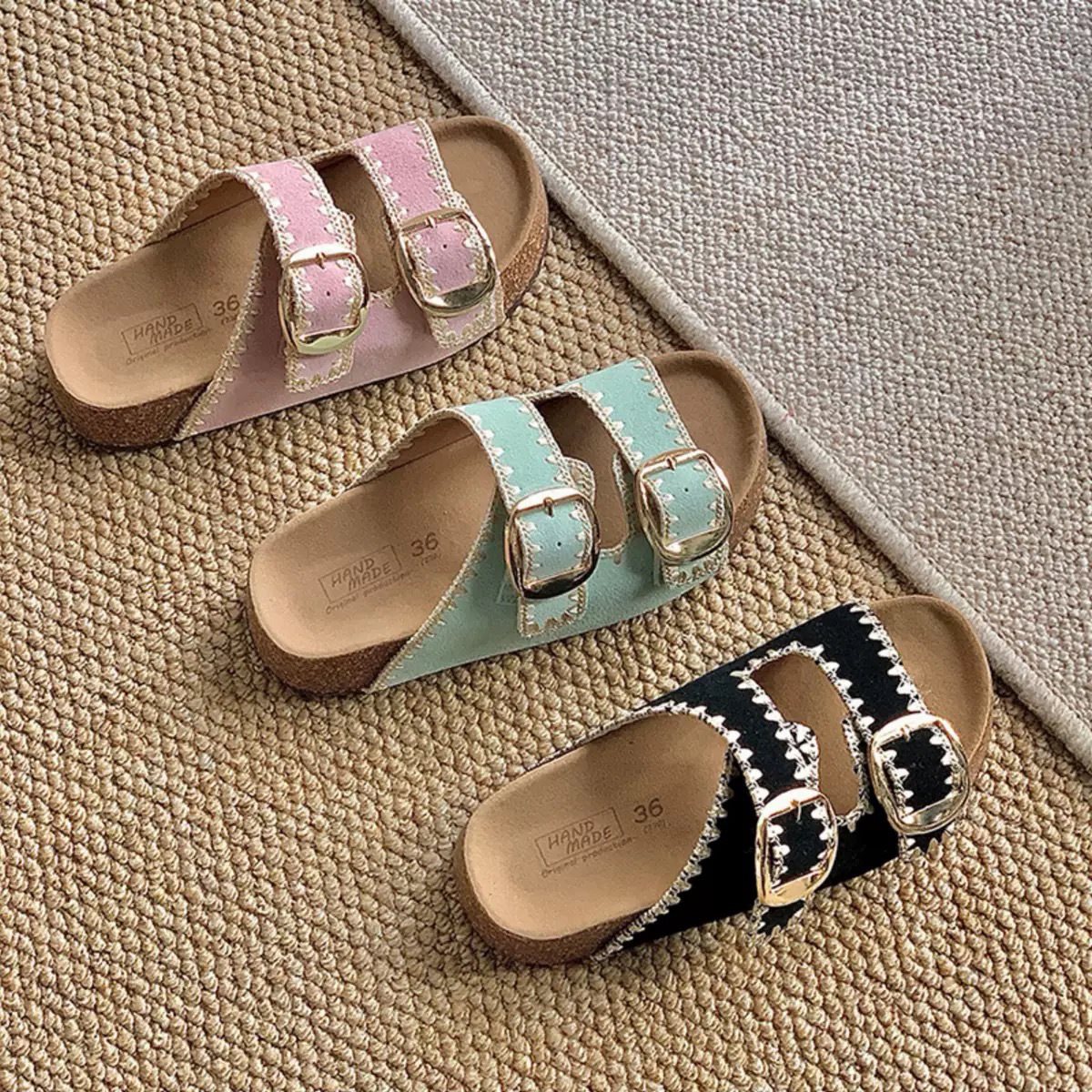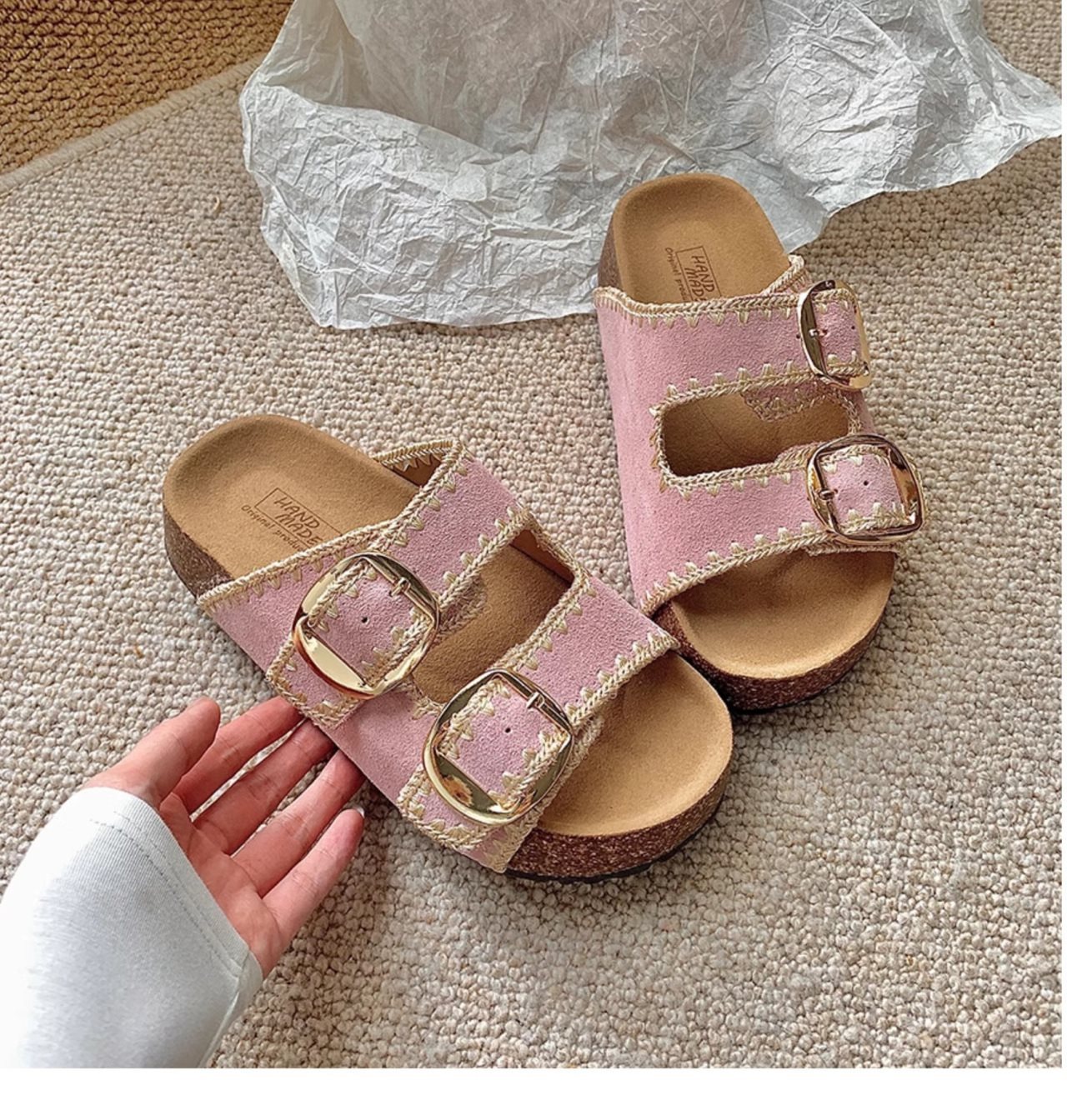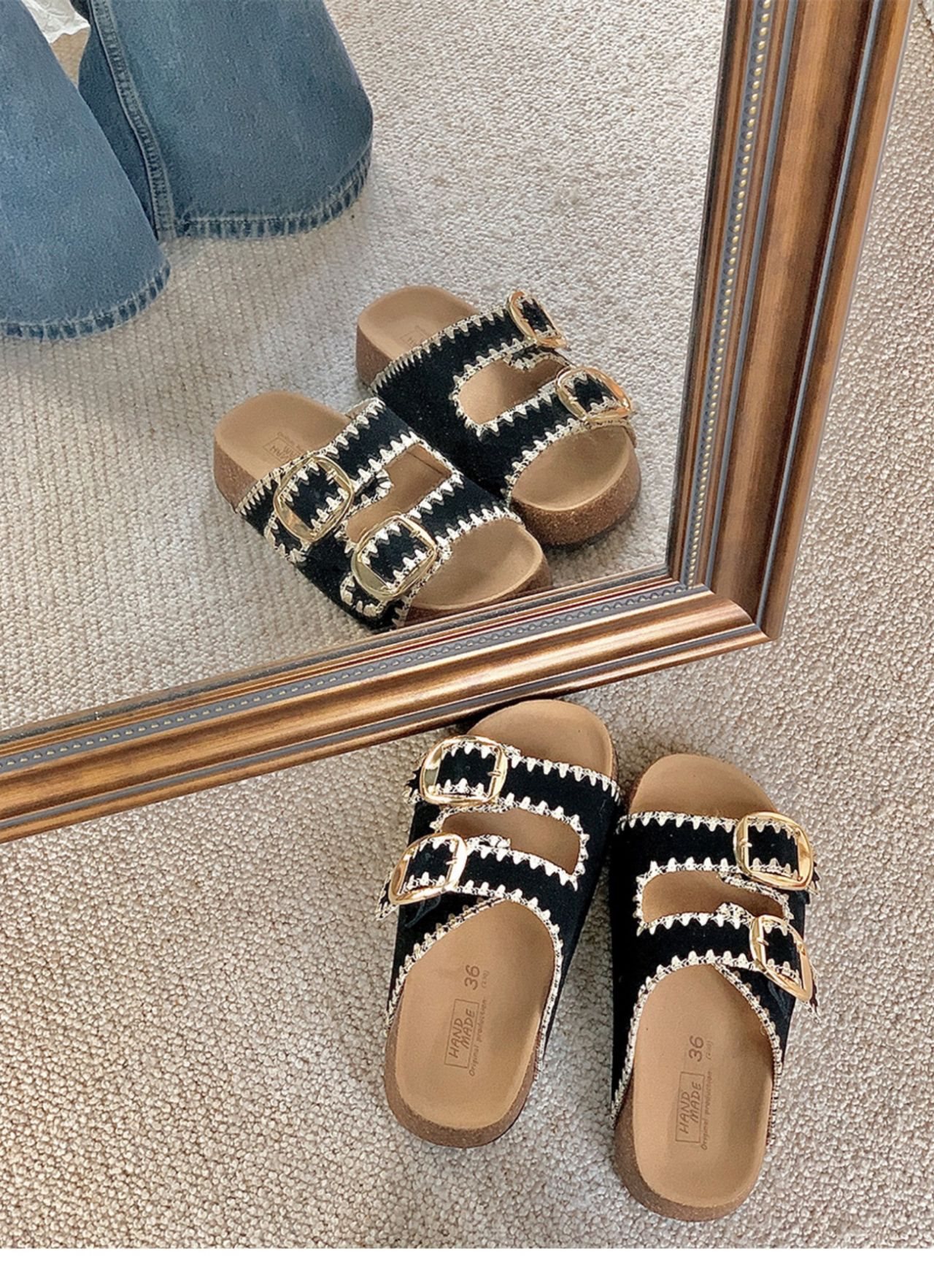 비치 신발 두꺼운 단독 레트로 새로운 Birkenthal 신발 버클 캐주얼 2025 여름 샤넬 스타일 샌들