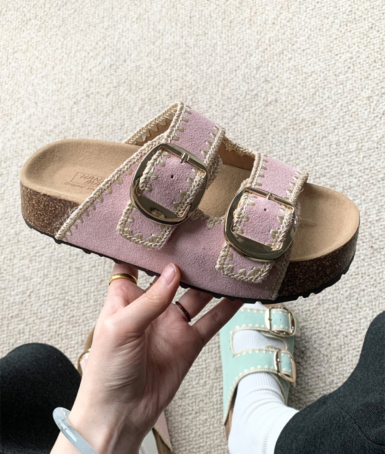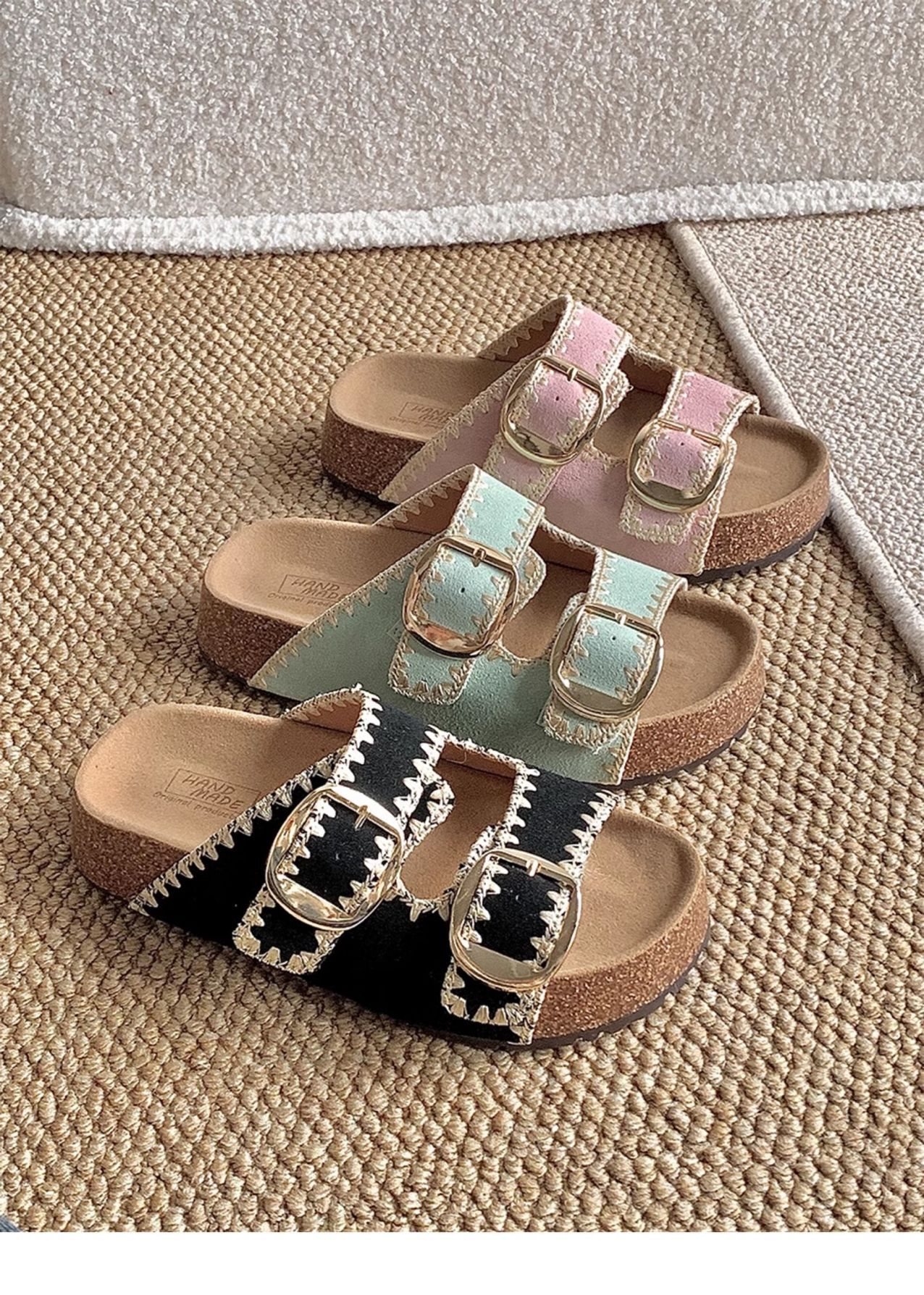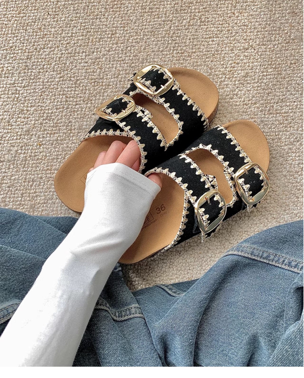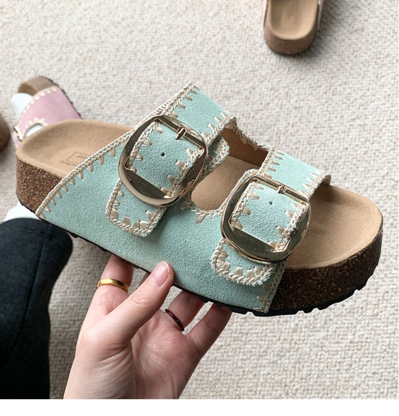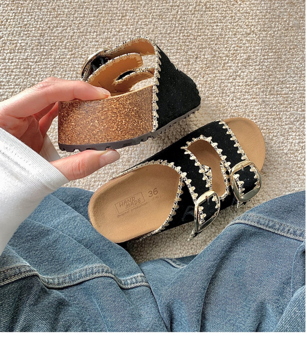 비치 신발 두꺼운 단독 레트로 새로운 Birkenthal 신발 버클 캐주얼 2025 여름 샤넬 스타일 샌들