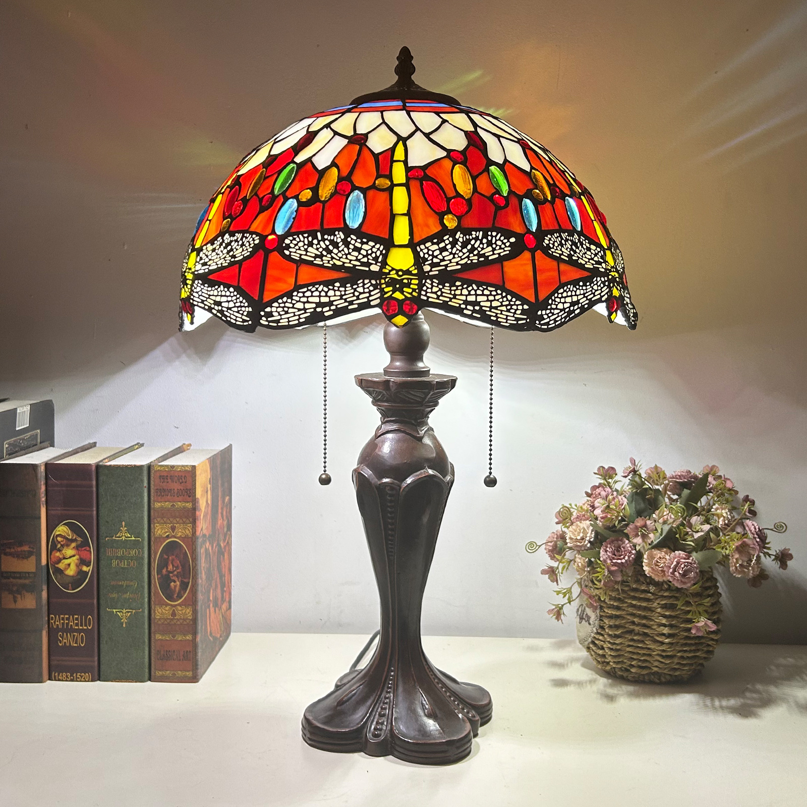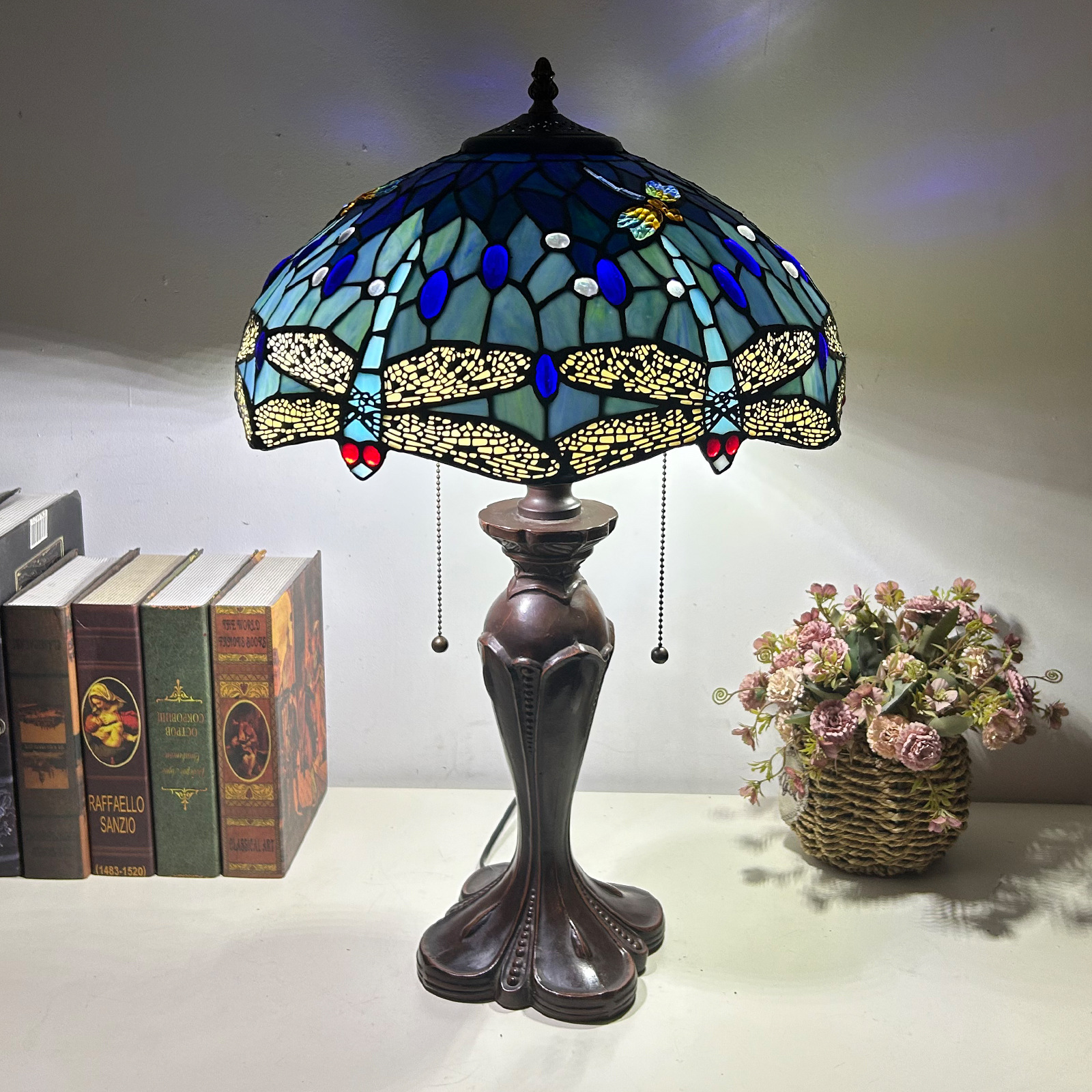 새로운 Huijing Tiffany 램프 미국 바 박스 카페 연구 레트로 잠자리 테이블 램프 따뜻한 장식스토어 가기
