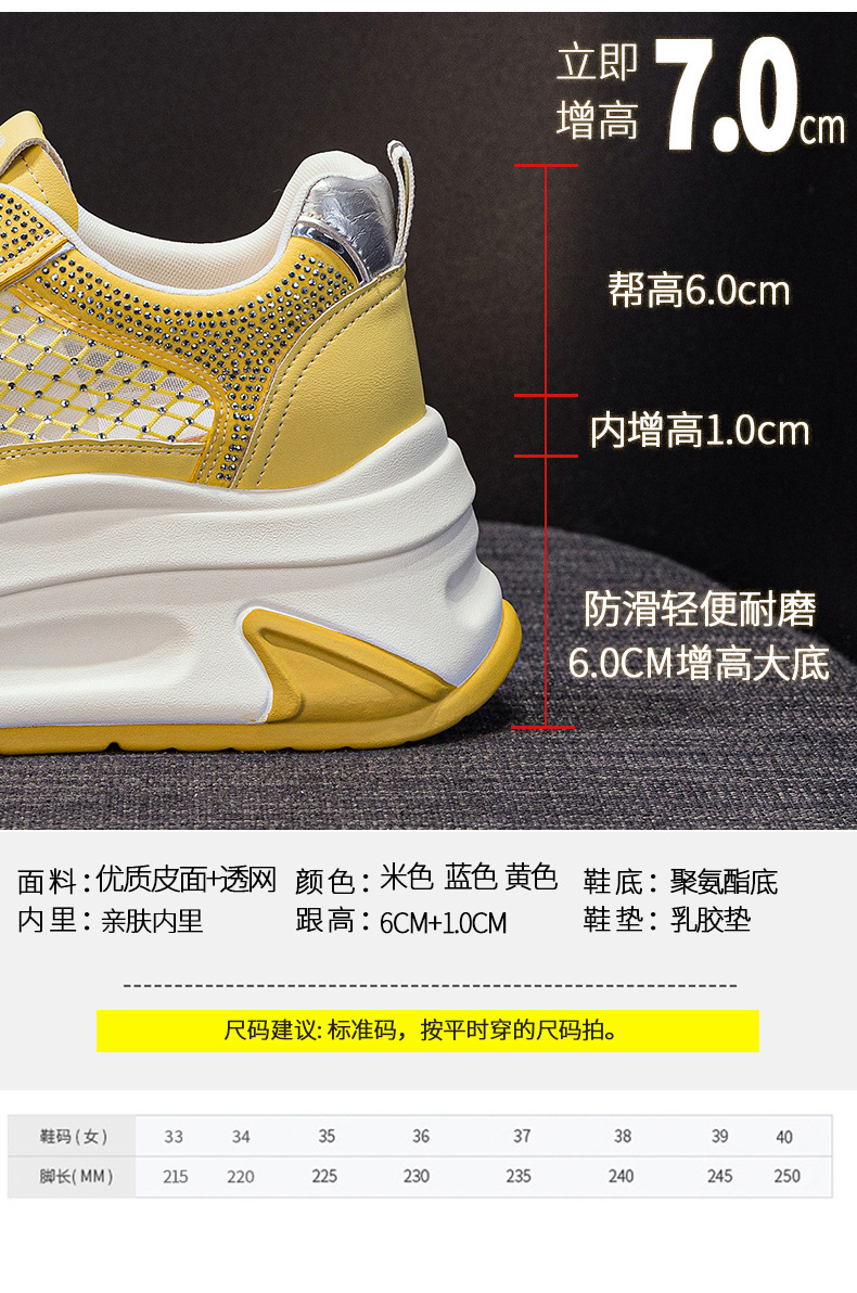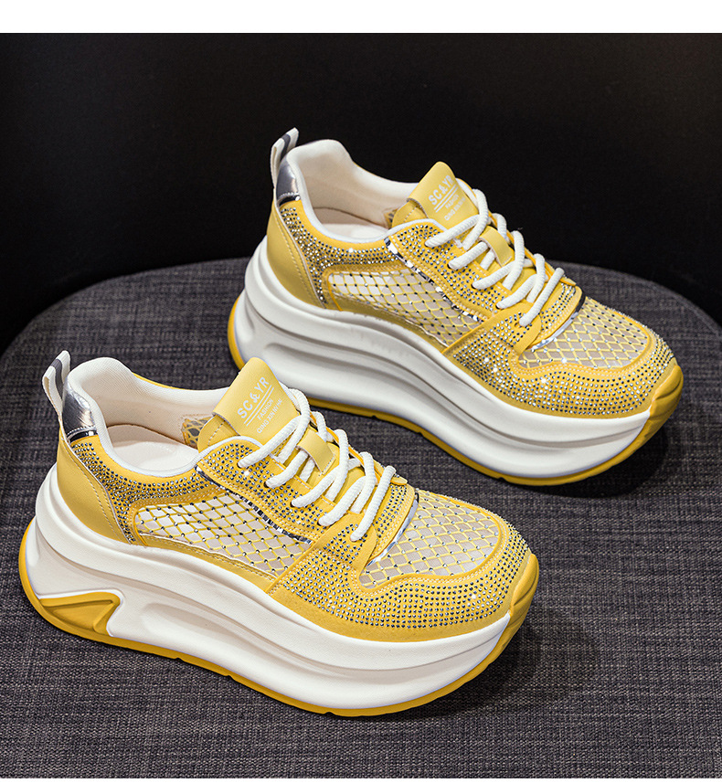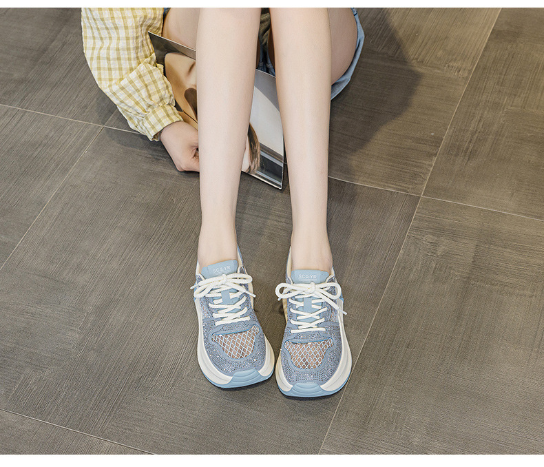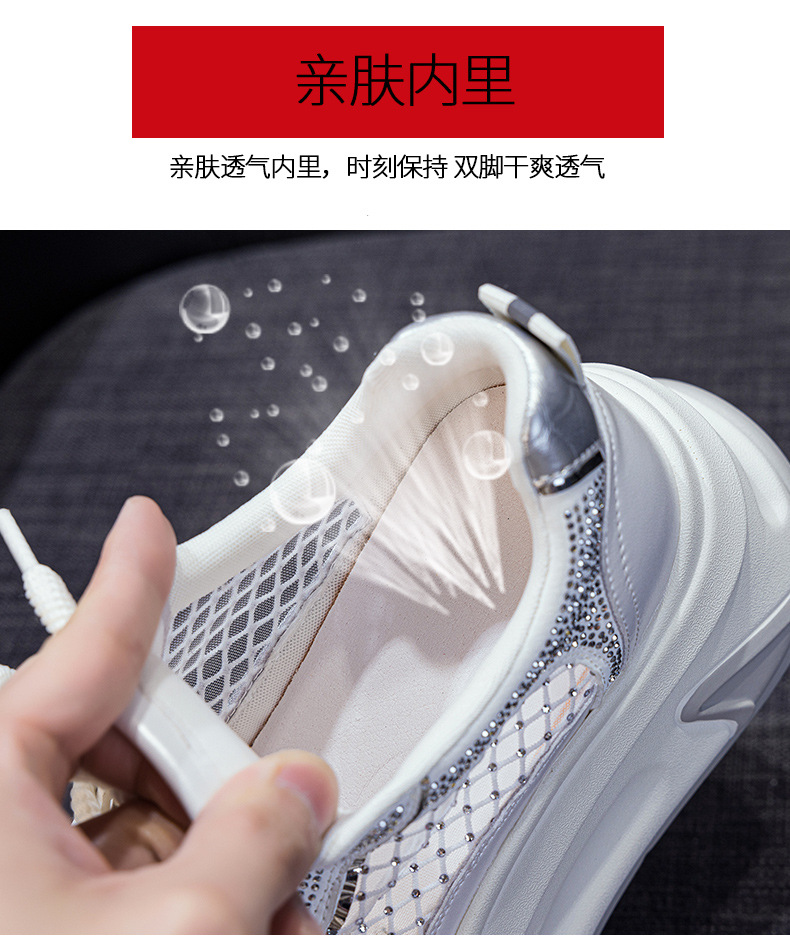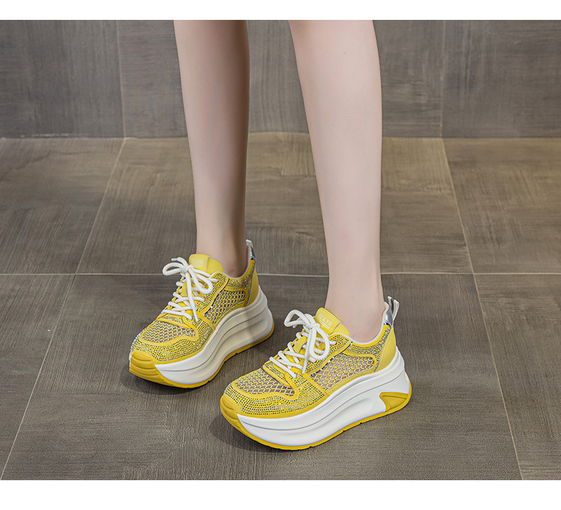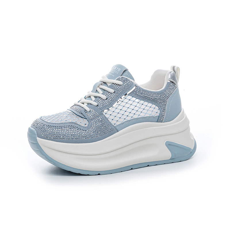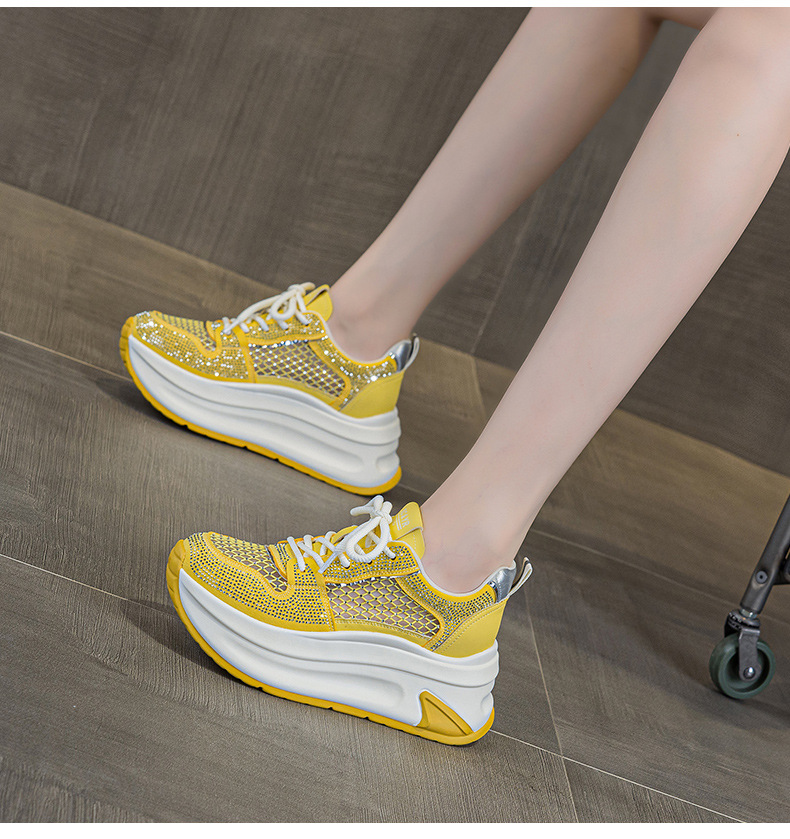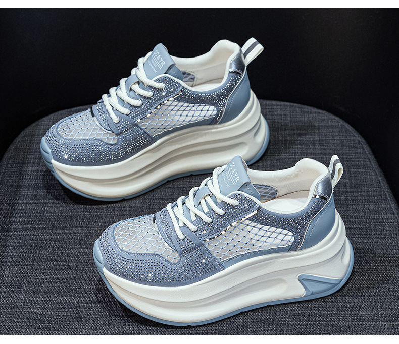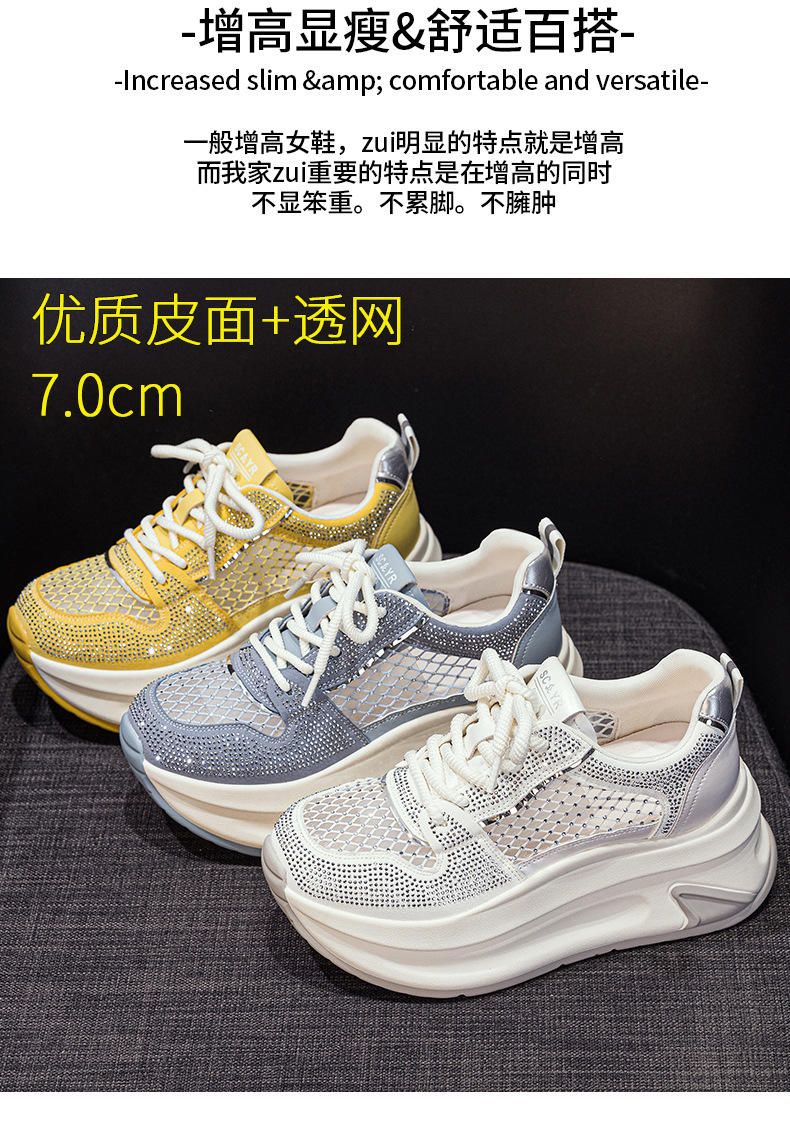 2025년 신상 여름 흰색 신발, 두꺼운 밑창, 레이스업, 컬러 매칭, 라인스톤, 캐주얼, 키가 큰 여성 신발, 키가 크고 슬림하며 통기성이 좋습니다.