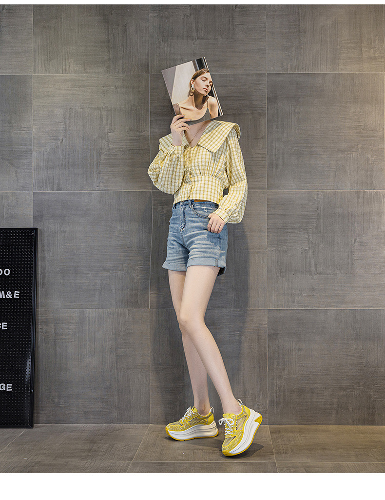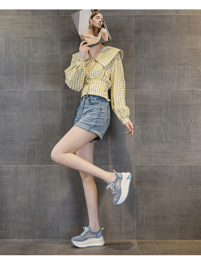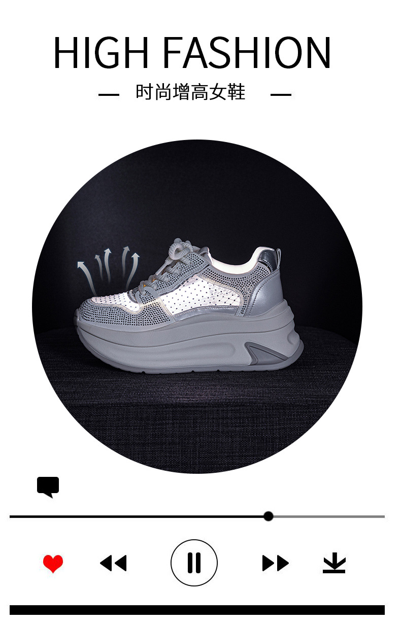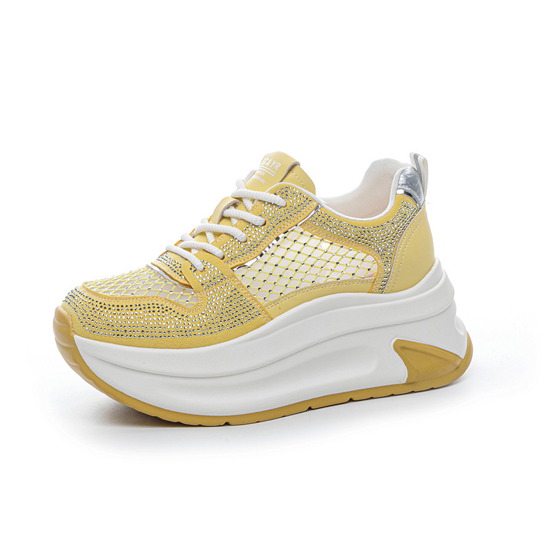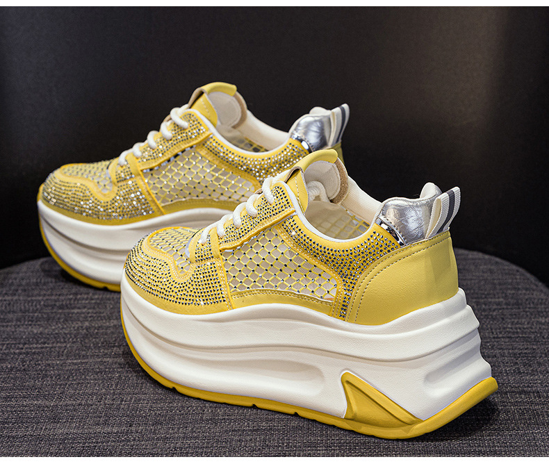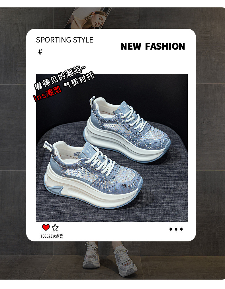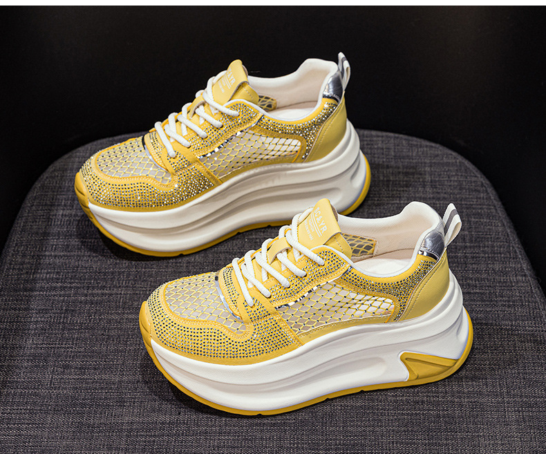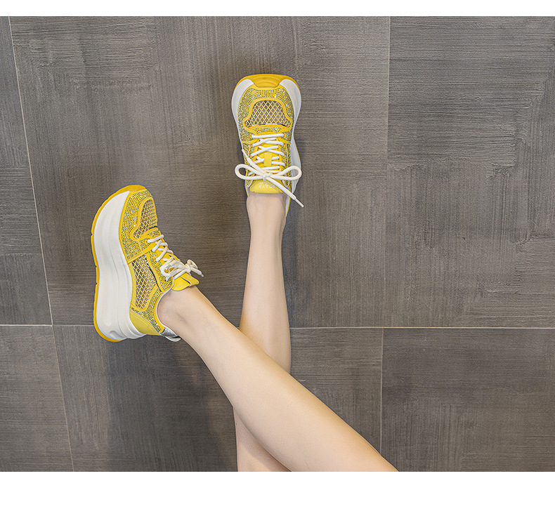 2025년 신상 여름 흰색 신발, 두꺼운 밑창, 레이스업, 컬러 매칭, 라인스톤, 캐주얼, 키가 큰 여성 신발, 키가 크고 슬림하며 통기성이 좋습니다.