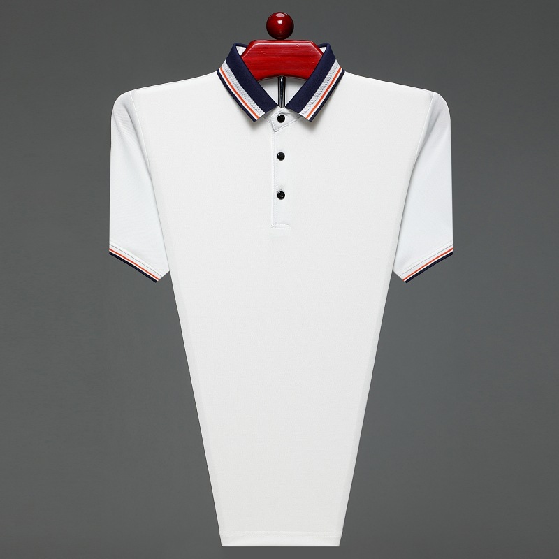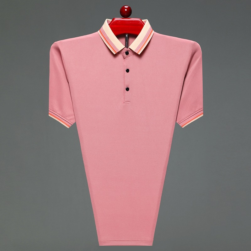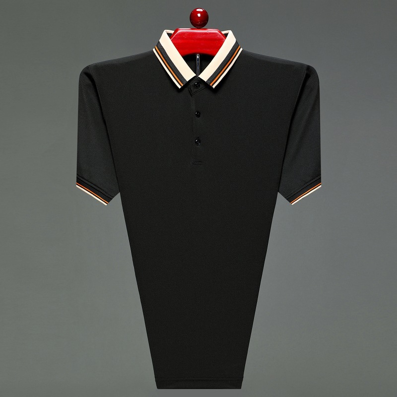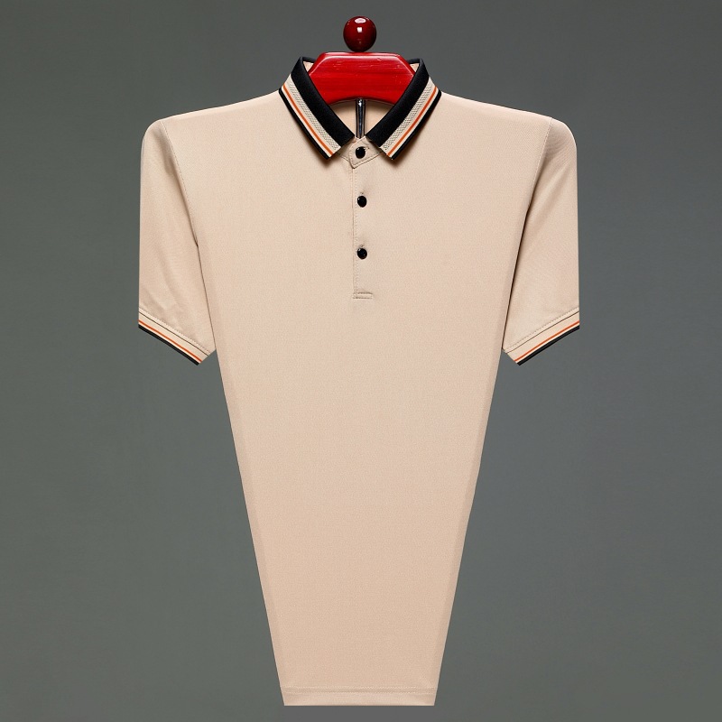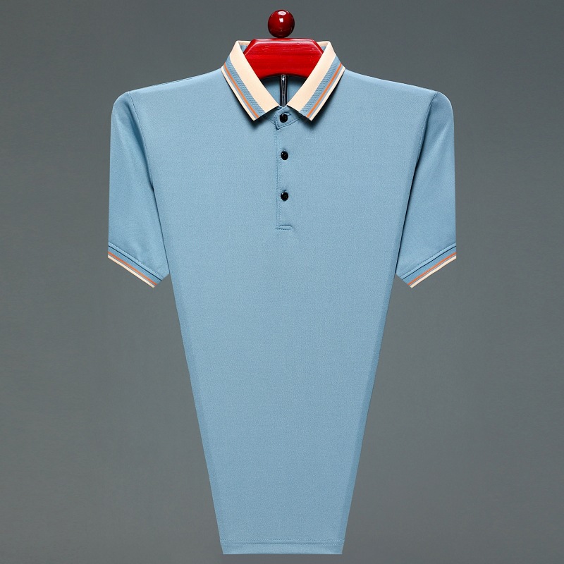 아빠의 여름 티셔츠 중년 남성 반팔 티셔츠 실크면 옷깃 최고 중년 및 노인 옷 할아버지 남성 의류