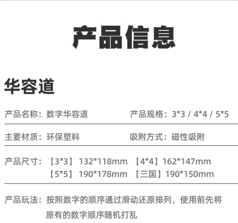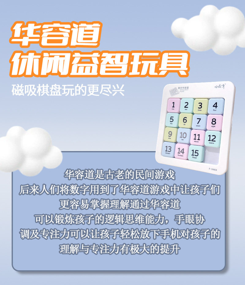 Huarongdao 자기 디지털 초등학생 슬라이딩 퍼즐 교육 장난감 어린이 삼국지 에디션 자기 스도쿠 9 사각형 그리드스토어 가기