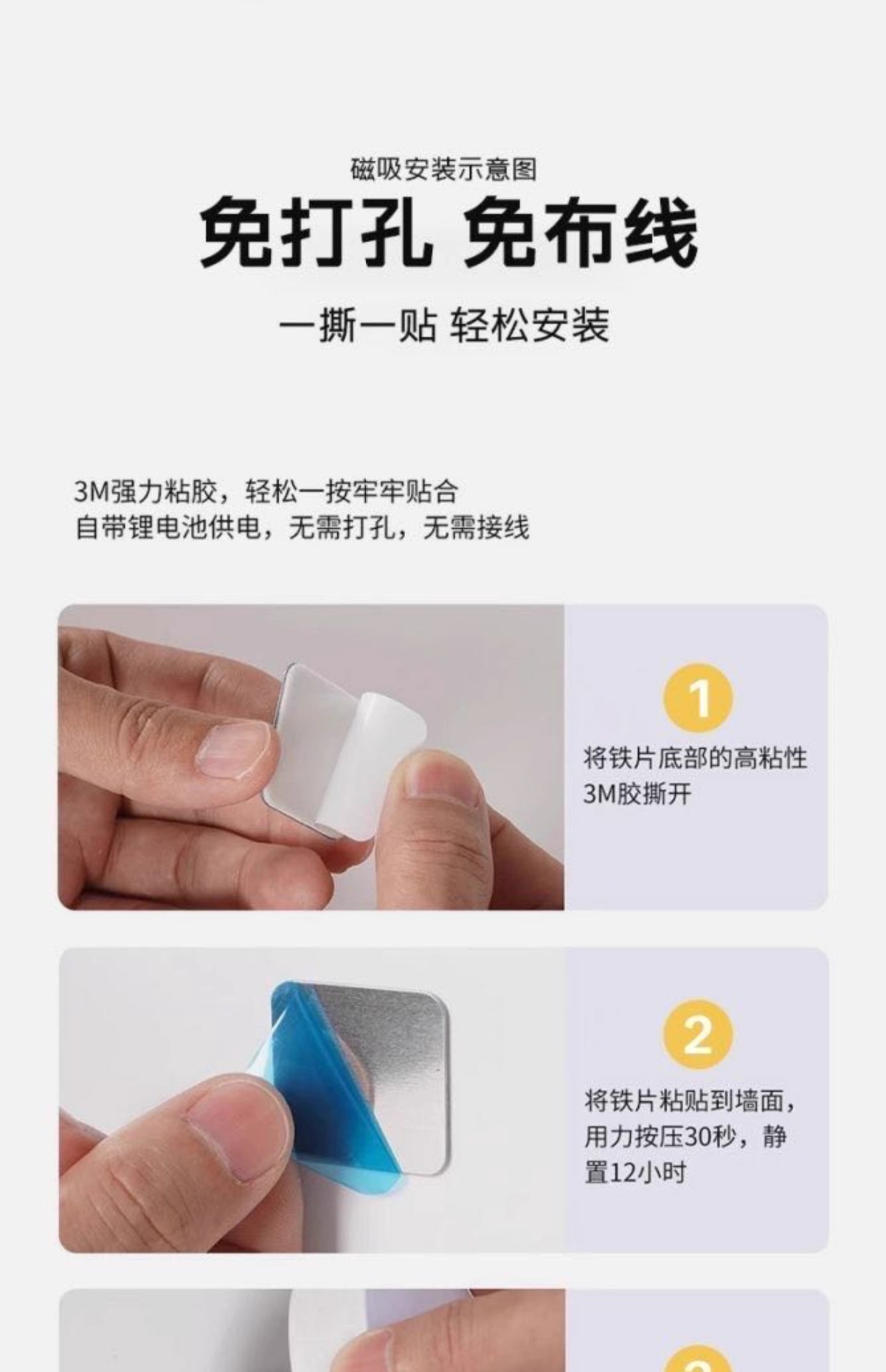 • 【1팩】백색광 ★ 버튼 유형 ★ 밝기 조절 가능(충전 케이블 + 자석 포함)
