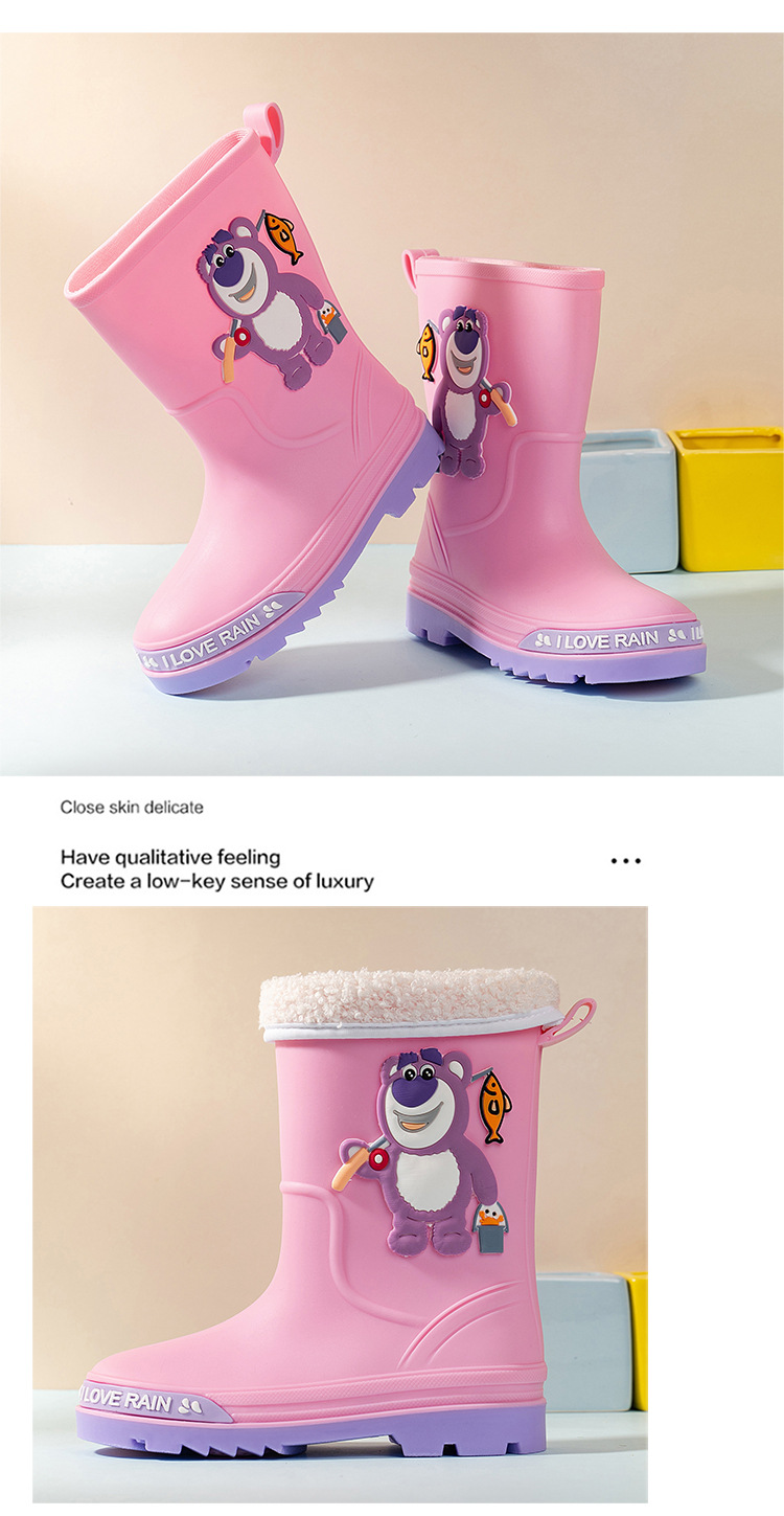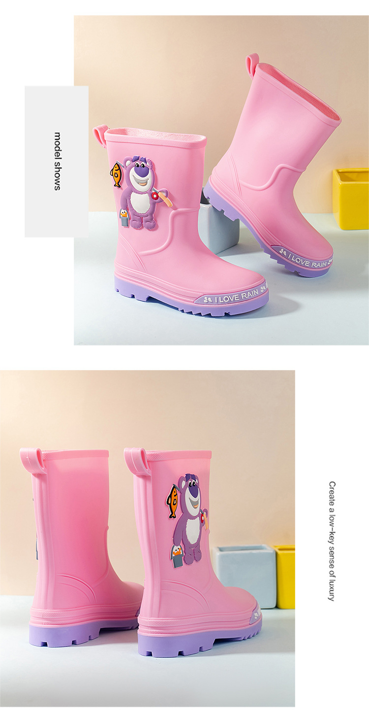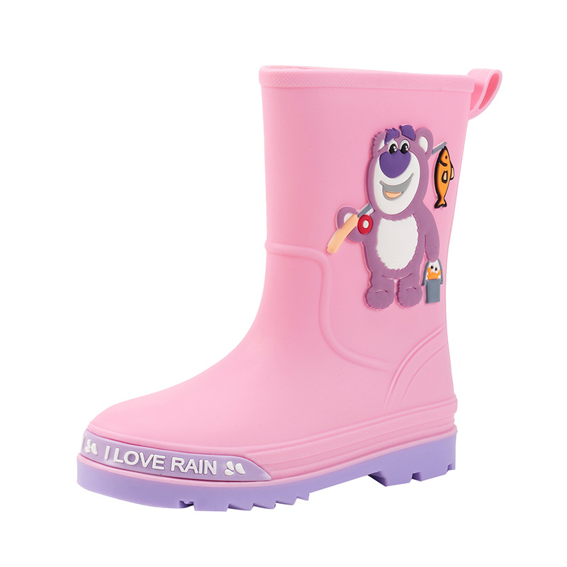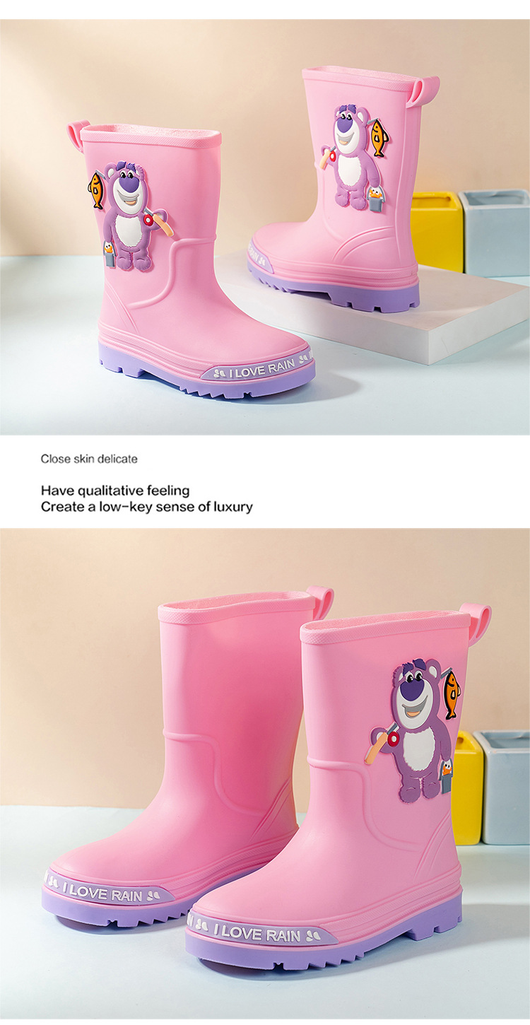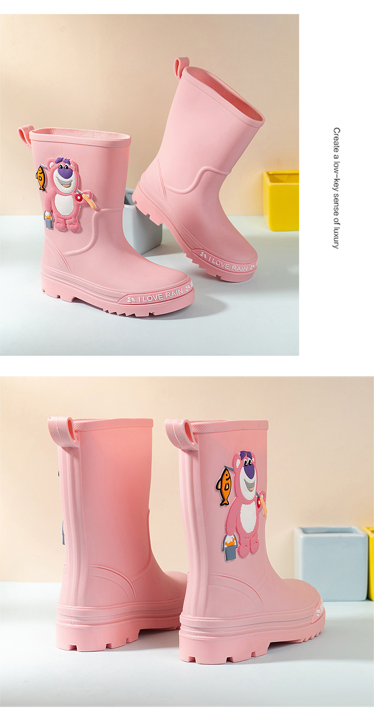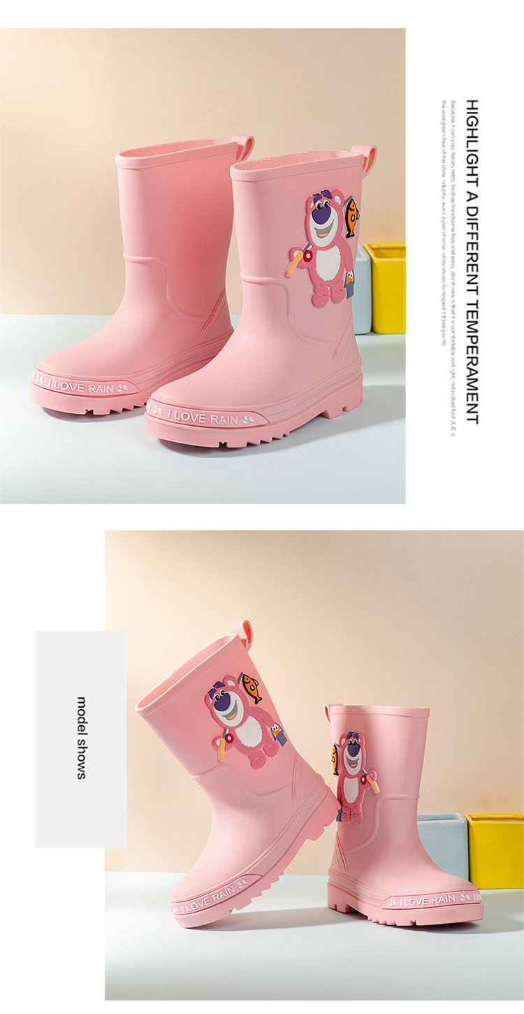 2025 어린이 장화 만화 곰 귀여운 소녀 방수 장화 유아 어린이 미끄럼 방지 물 신발 학생 고무 신발