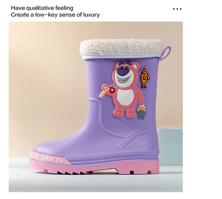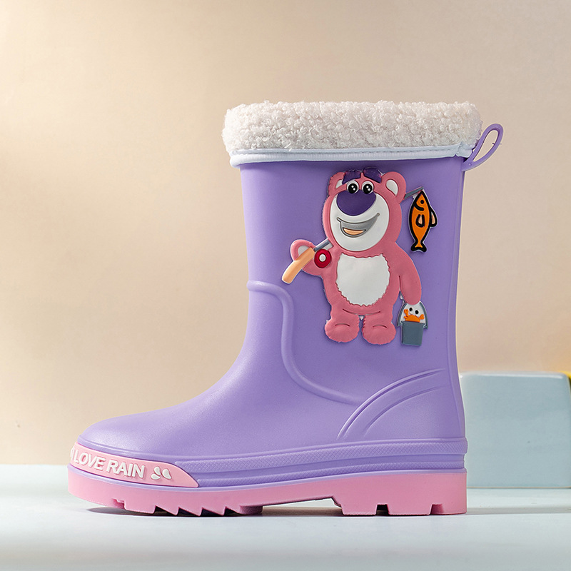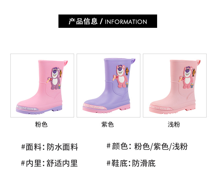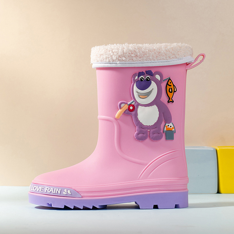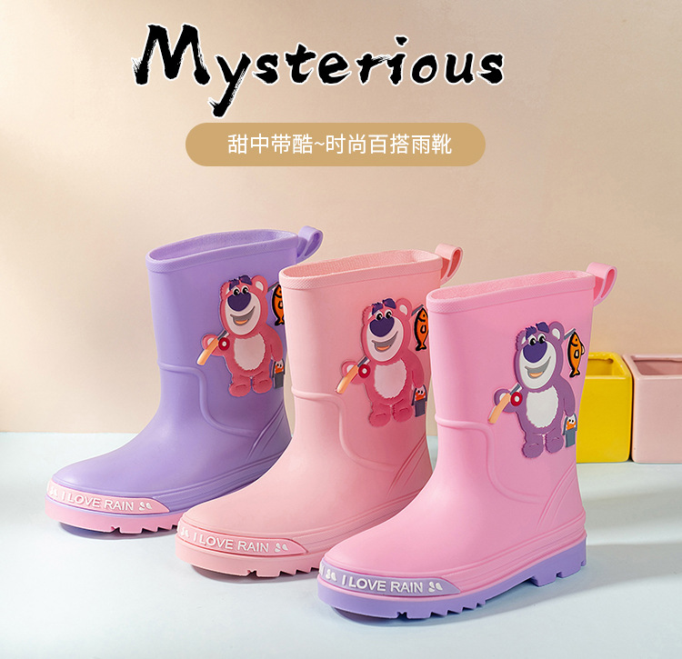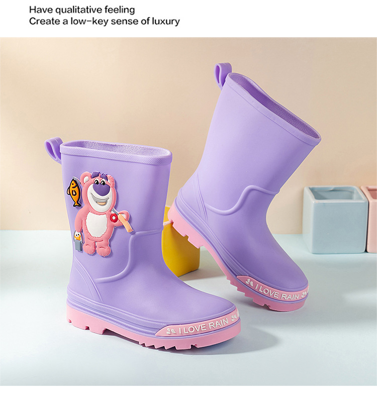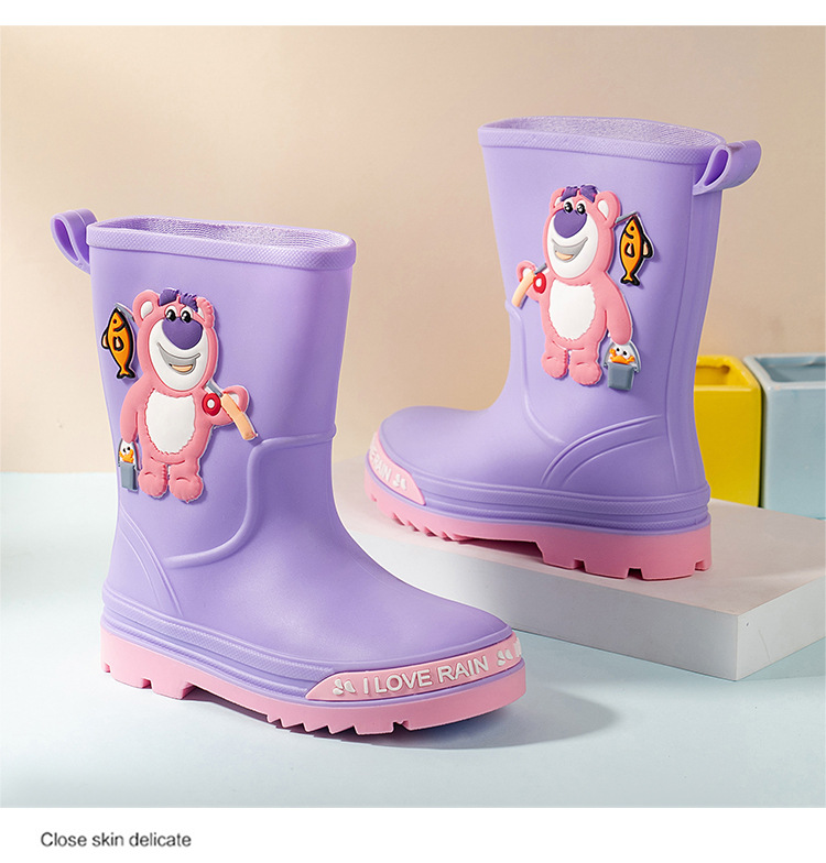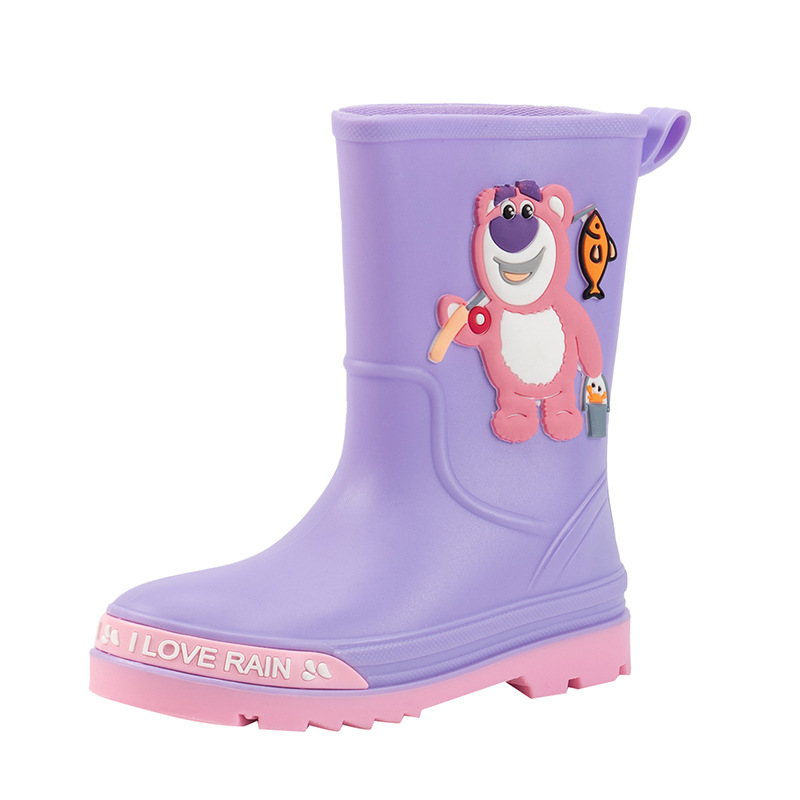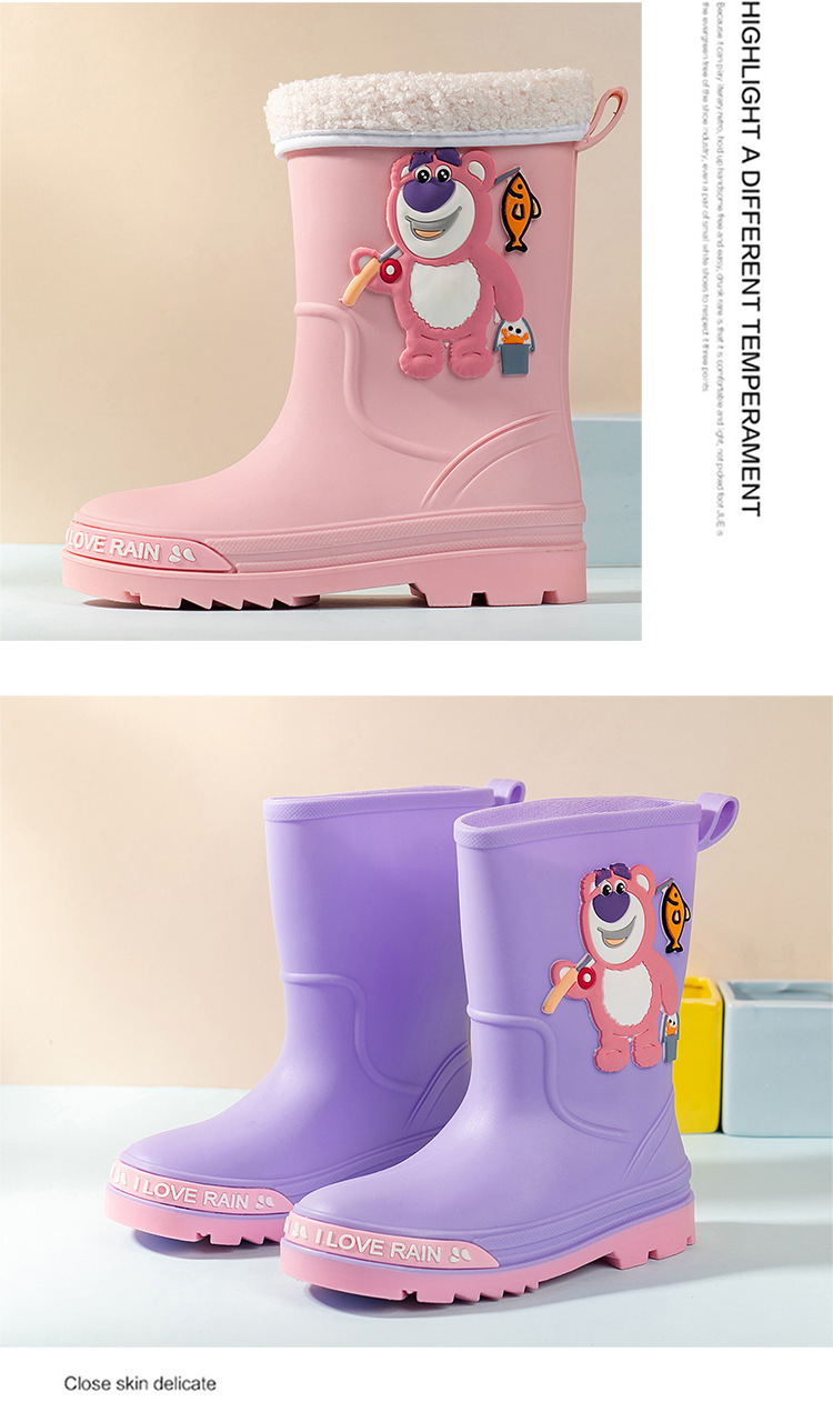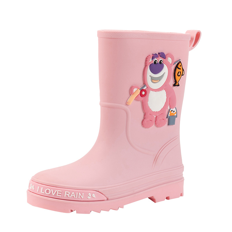 2025 어린이 장화 만화 곰 귀여운 소녀 방수 장화 유아 어린이 미끄럼 방지 물 신발 학생 고무 신발